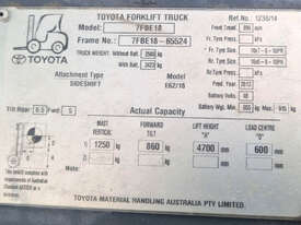 Built with Toyota’s advanced engineering, the 7FBE18 ensures reliability, efficiency, and enhanced operator safety, making it an excellent choice for high-demand applications. Its electric power source also offers environmentally friendly solutions, supporting green initiatives in various sectors.