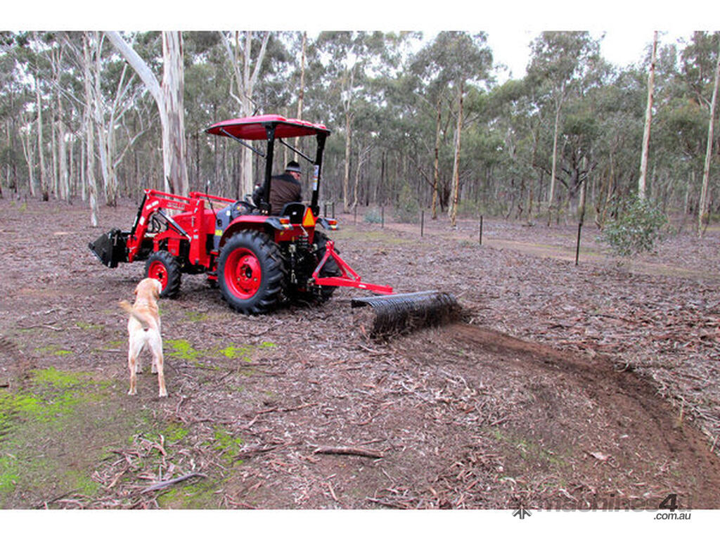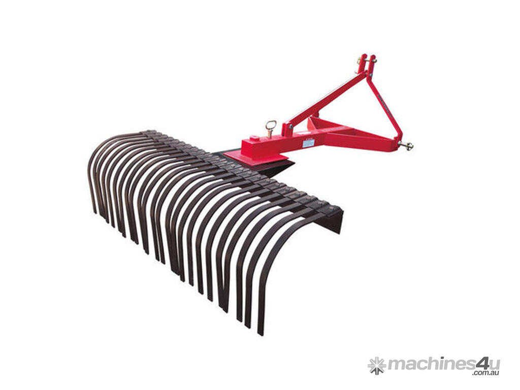 AGMAX SR120 4' stick rake, suits tractors 17-45hp (Cat 1). 2 year warranty. Closely spaced tines. Collect debris, spread and level soil, rake and harrow. Ideal for dense plantations.