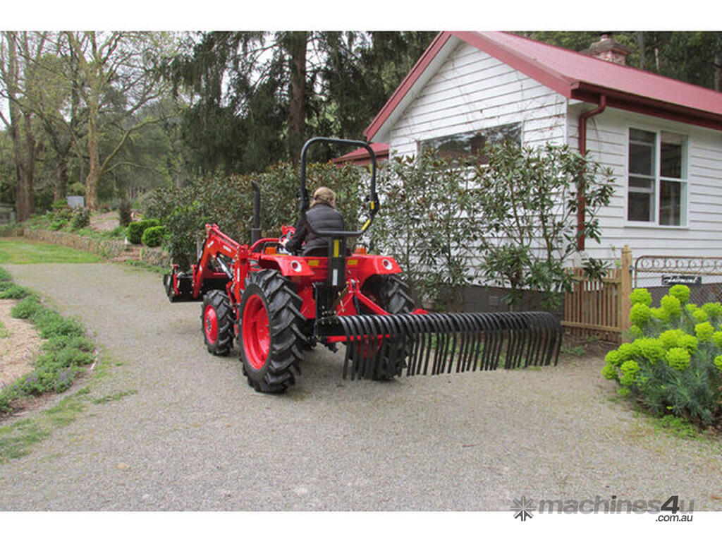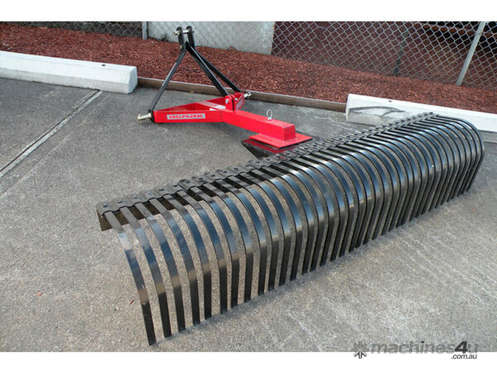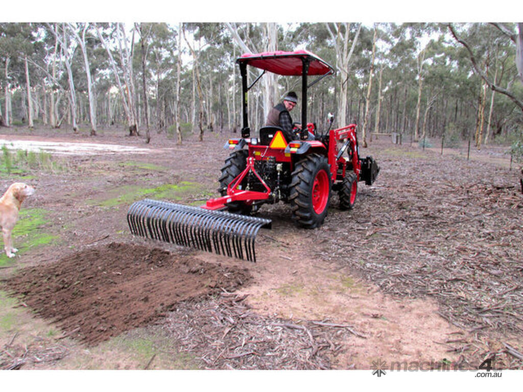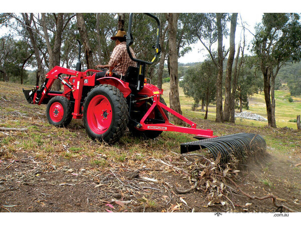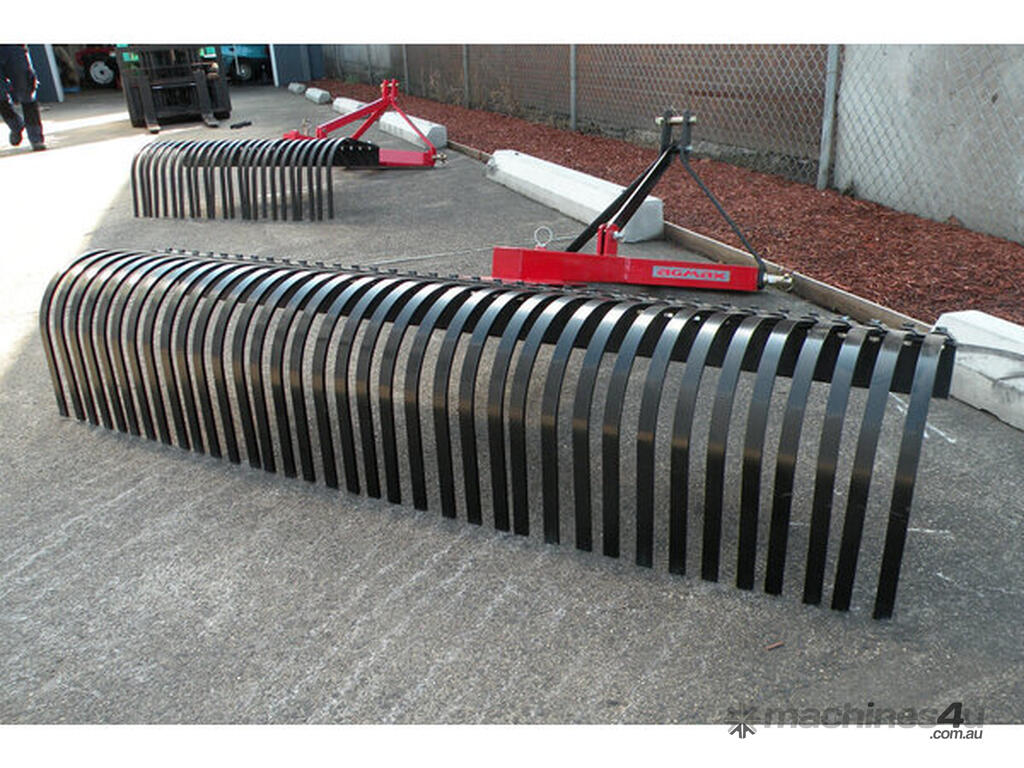 AGMAX SR180 6' stick rake, suits tractors 17-60hp (Cat 1 or 2). 2 year warranty. Closely spaced tines. Collect debris, spread and level soil, rake and harrow. Great for deciduous trees and bark shedding eucalyptus.