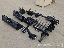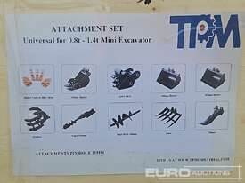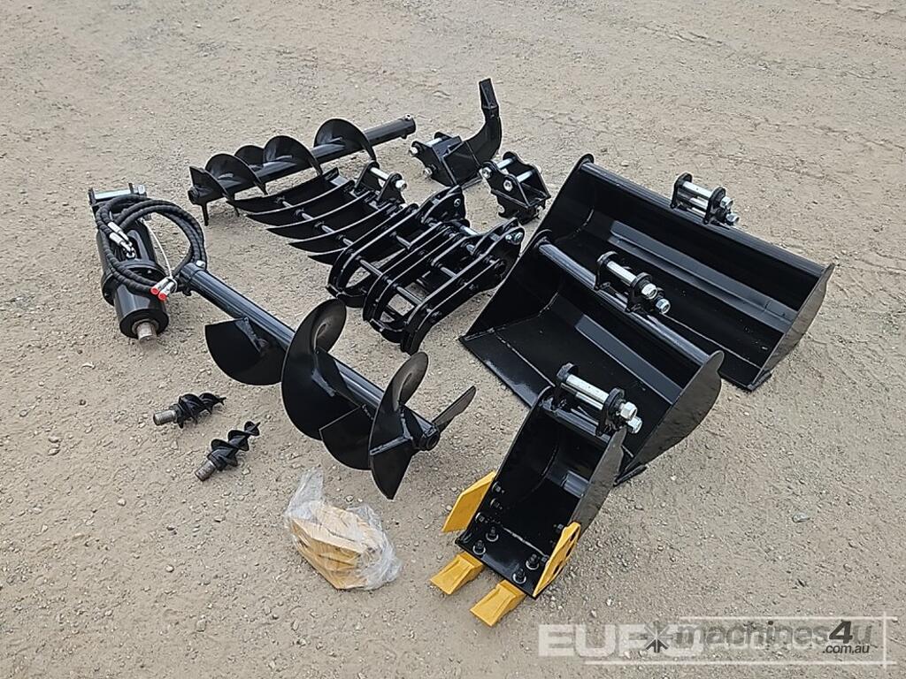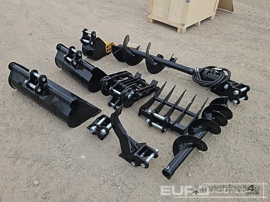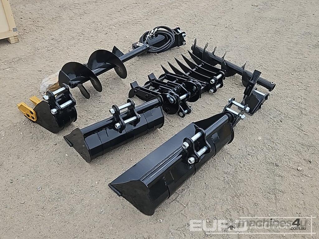 TPM 5pcs Bucket Teeth, 8 inch Bucket, 24 inch Bucket, 32 inch Bucket, Ripper,Rake,Quick Hitch, 8 inch Dia Auger, 12 inch Dia Auger Rod. Grabber. for 0.8-1.4 ton Mini Excavators. 1 inch Pin Hole - 21228-28