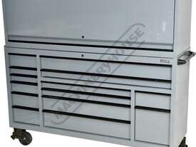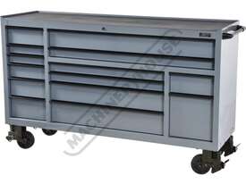 But it's not just about looks. These toolboxes mean serious business. Gas struts make opening lids easy, while the key lockable feature keeps your tools safe and sound. Soft push-to-close drawers and full-length under drawer opening tabs make opening each drawer from any position a breeze. The ball-bearing slides ensure drawers smooth operation and the larger drawers even sport dual slides for extra strength. Your tools won’t slide around or get damaged, thanks to the foam grip mats lining supplied in each drawer and the oversize castor wheels will make pushing these behemoths a breeze.