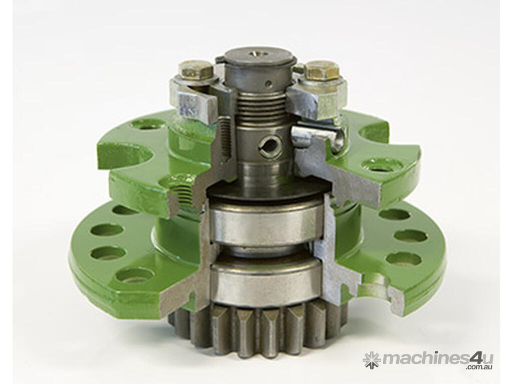 When the disc hits an obstacle, the shear pin breaks and the disc threads up on the threaded drive shaft and moves out of the way of it’s neighbouring discs, which continue to spin without damage.