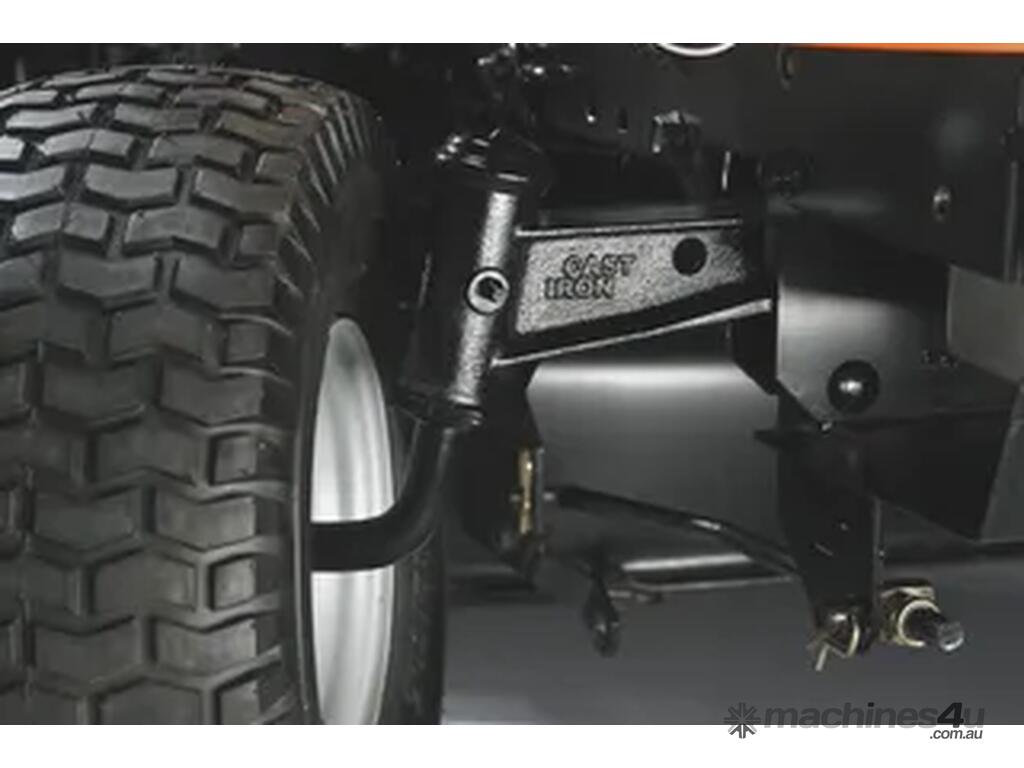 Heavy duty garden tractor with unbeaten capabilities in its class. Versatile ClearCut™ cutting deck and powerful, reliable engine mean fast mowing anytime, anywhere – with a perfect result every time. Commercial grade ground-engaging transmission with dash operated differential lock works with large, wide rear tyres to enable tough usage without overheating, plus great traction and less damage to the lawn. Improved quality, comfort and ergonomics for an optimal driving and ownership experience. Driven by a powerful and robust, Kawasaki, twin cylinder engine.