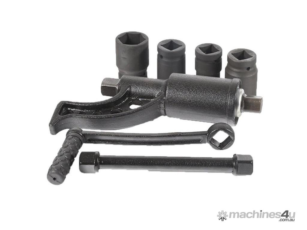 Ideal for removing/installing wheel nuts on commercial and light commercial vehicles when an air impact wrench is not easily accessible. Supplied in carry-case with rubber gripped handle, 210mm extension for spinning of loosened nuts and 27+32+33+41mm impact sockets. Suitable for Trucks, Buses, RVs and Other Heavy Duty Vehicles. Removing wheel nuts is made simple by the torque multipliers 1:56 ratio, this means every Nm of torque you put in, it puts out 56.