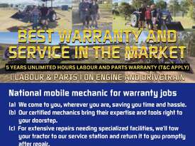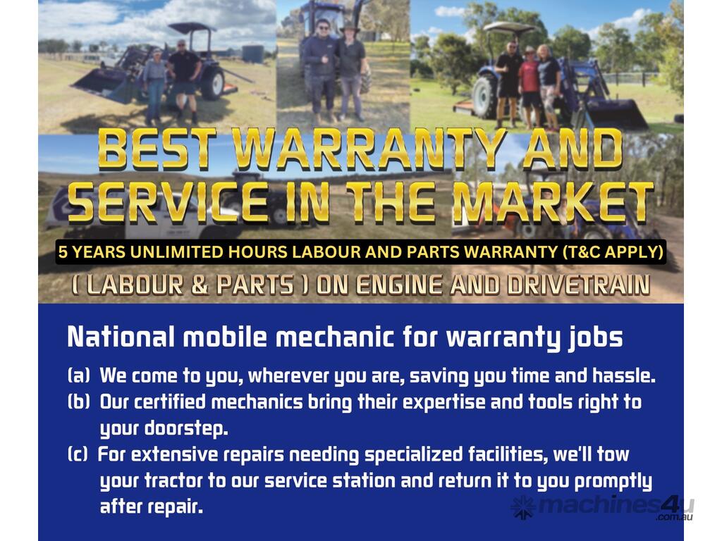 Comprehensive pre-delivery, full manuals, and a QuickStart guide are provided for you. Each of our tractors will undergo a thorough pre-delivery process covering the engine, drivetrain, hydraulics, electrical components, rubber parts, and overall functionality. This guarantees that each tractor leaving our workshop is completely ready for immediate use.