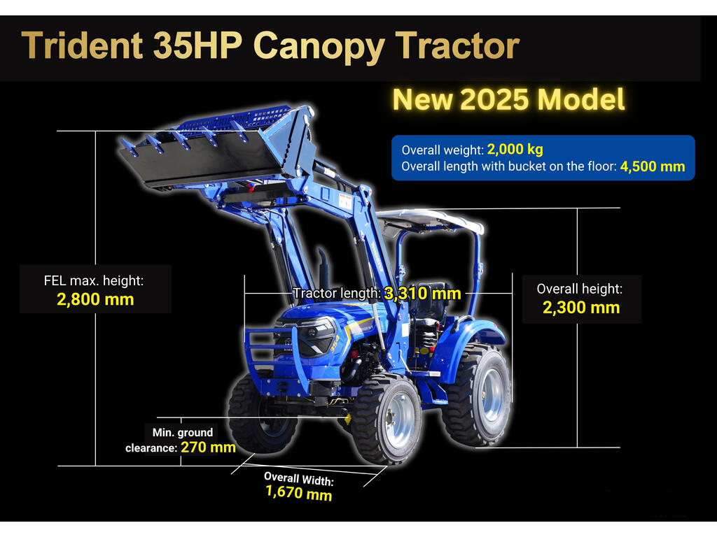 Introducing the 2025 Trident 35HP Canopy Tractor.