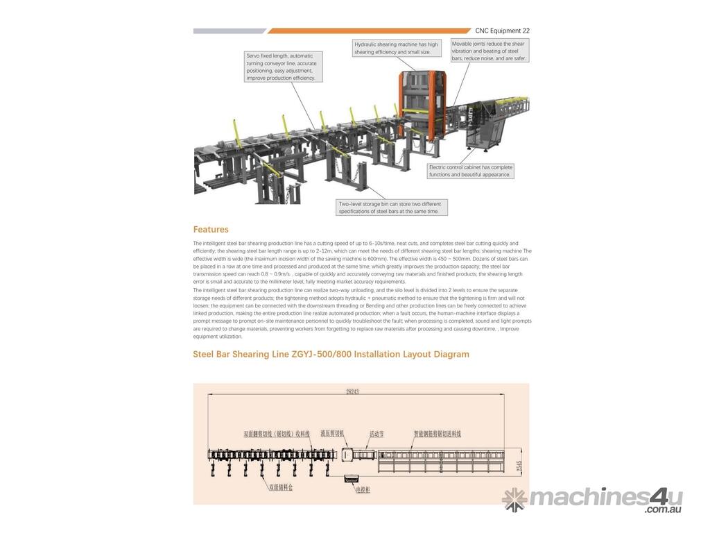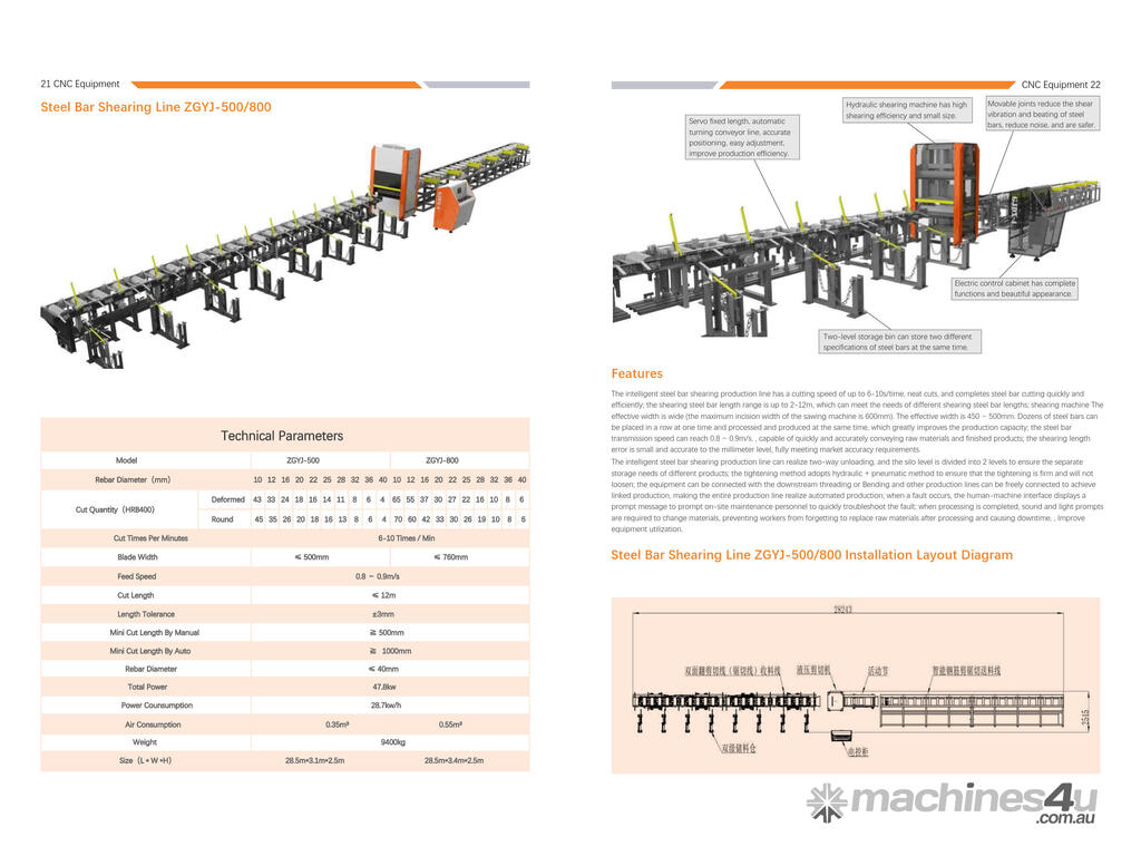 - **Wide Cutting Range: ** It can cut steel bars from 2 meters to 12 meters in length, with a maximum incision width of 600mm and an effective processing width of 450-500mm, allowing for simultaneous processing of multiple bars.