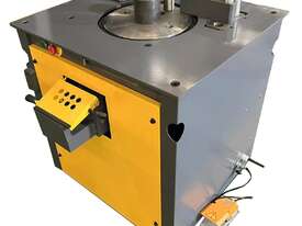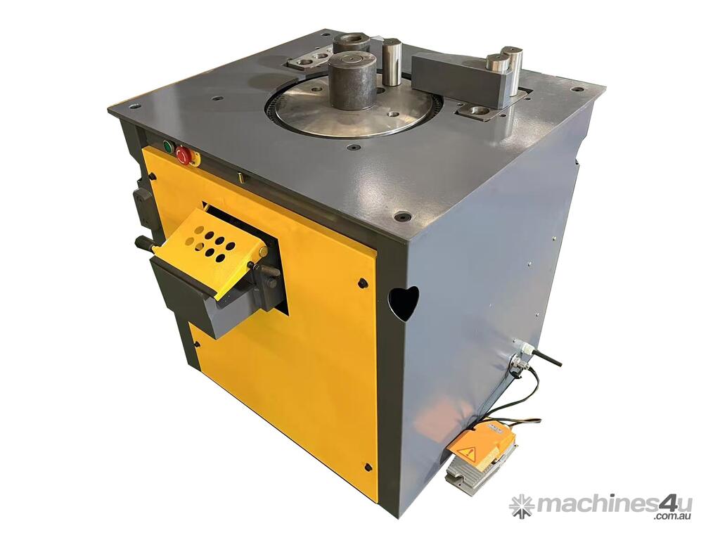 High-Performance Cutter: Built on a sturdy cast frame, the cutting system includes multi-sided, interchangeable blades, safety shields, and synchronized shear cycles with the bending operations.