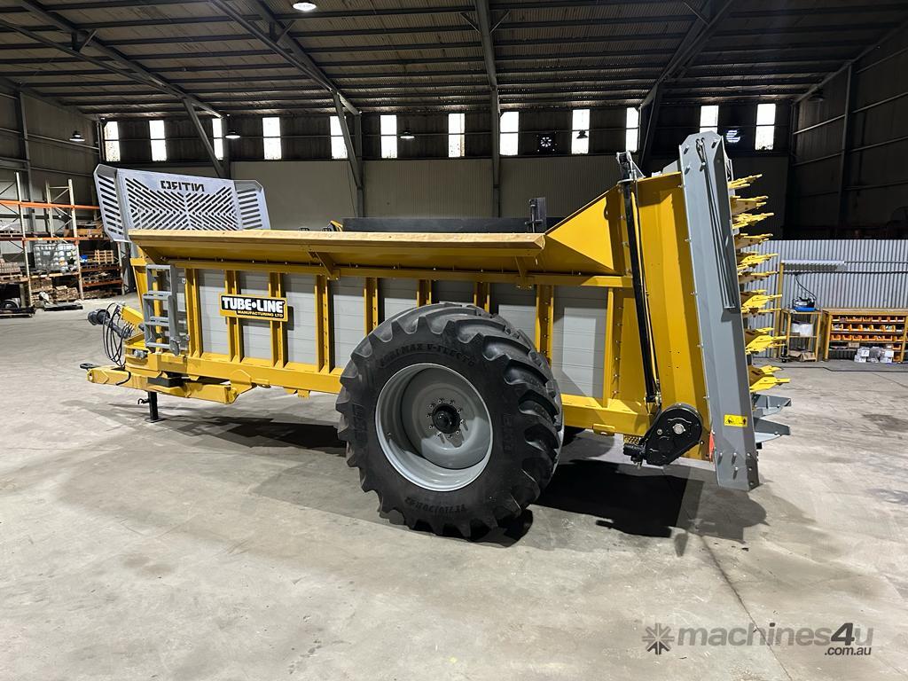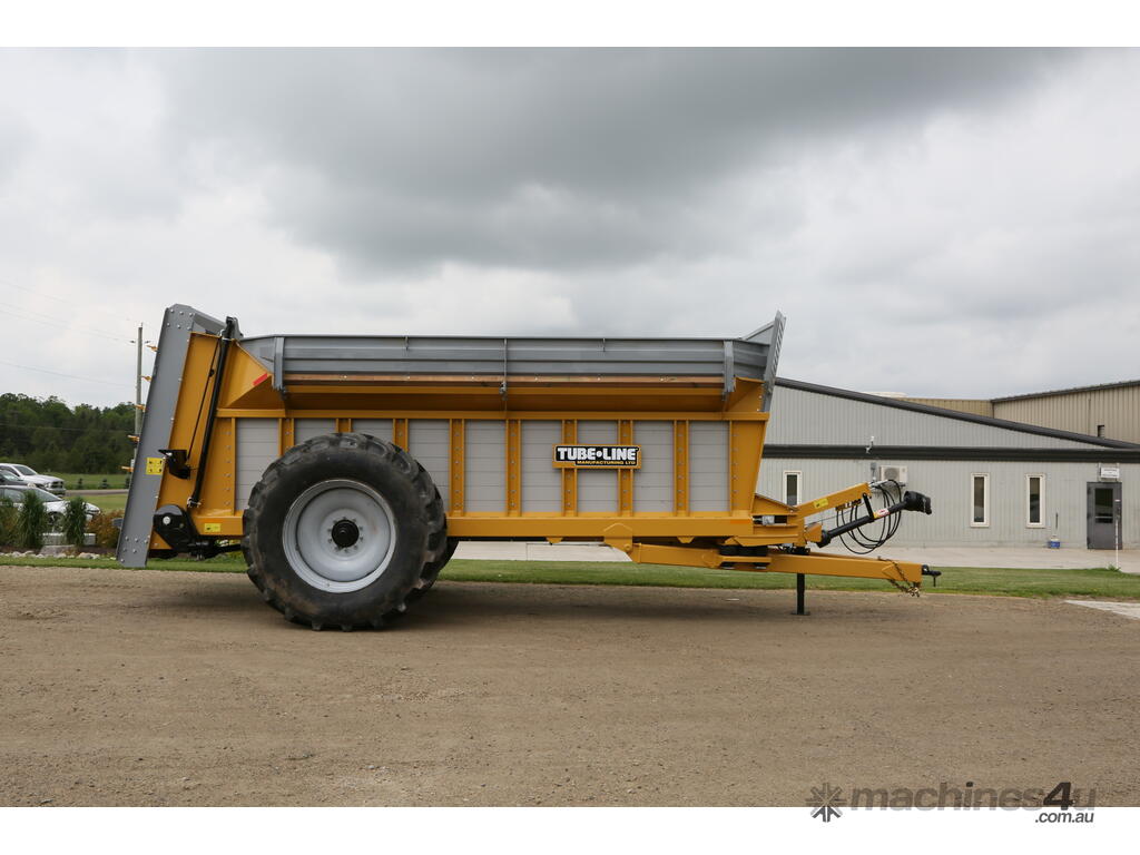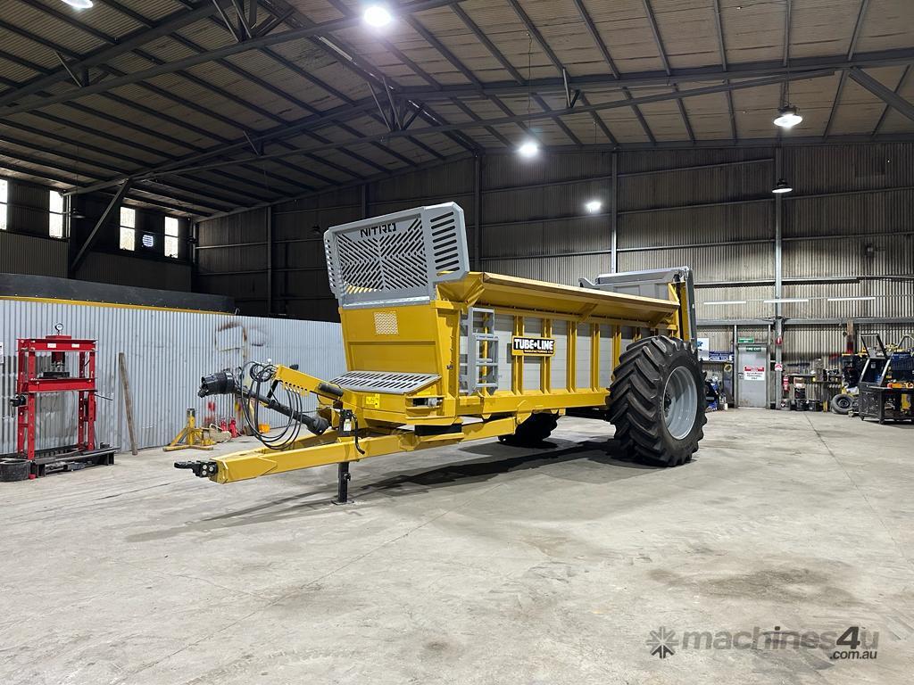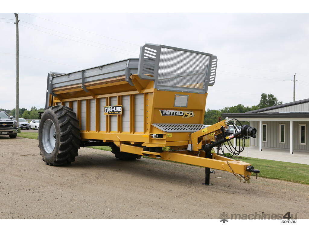 The NITRO spreader from Tubeline originally started with the 450, 600, and 750 models followed by the 950 model shortly after the initial product launch. Developed with features to ensure commercial readiness these spreaders offer slip slide poly board floors and walls, a guillotine endgate, reversible apron chain, and quick drop beaters. Engineered for commercial use, our commercial line are all scale ready. The guillotine endgate can be held in any position controlling how much material is able to be moved to the beaters by the variable speed apron chain. This method of delivery provides consistent metering whether working with pen pack or semi-solids.