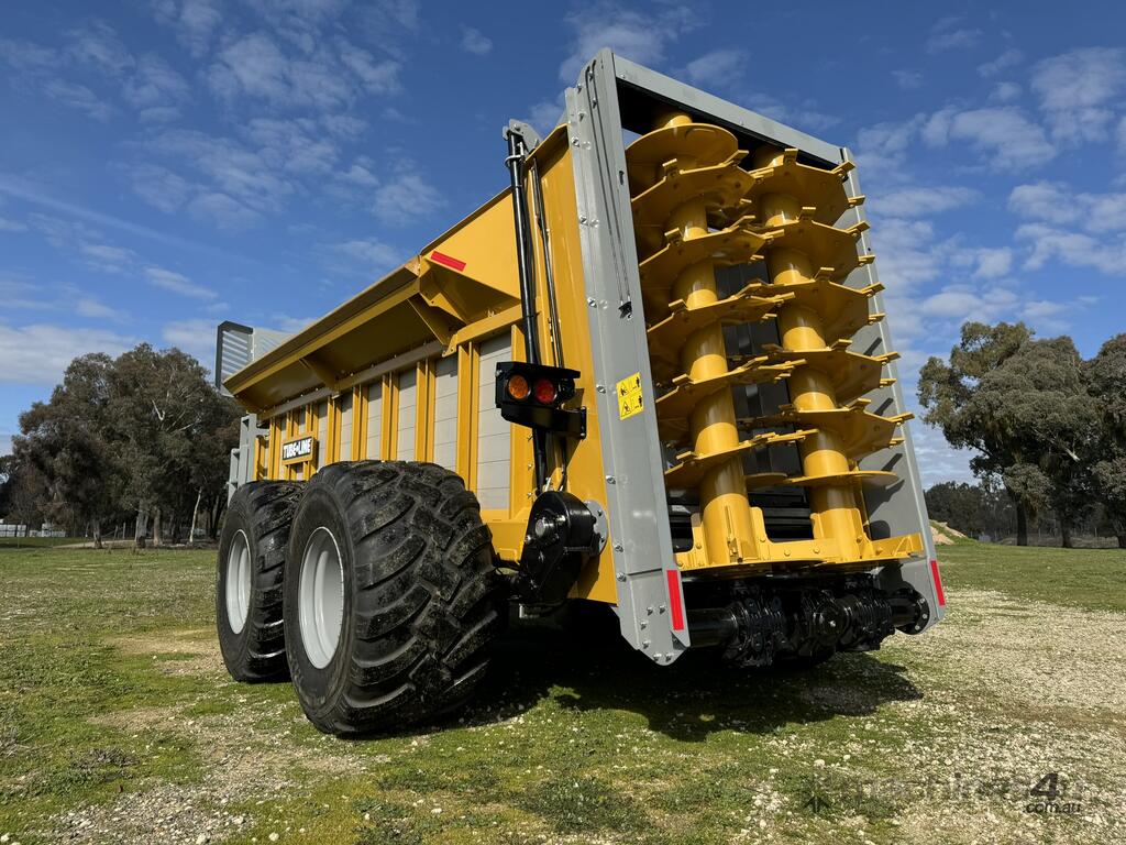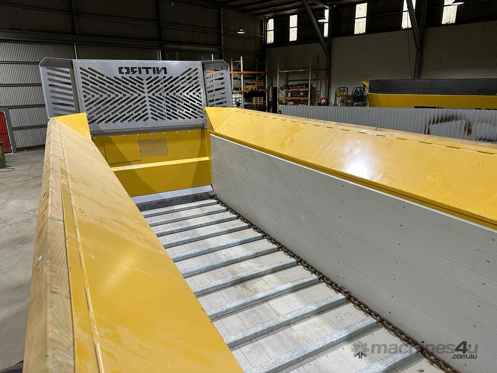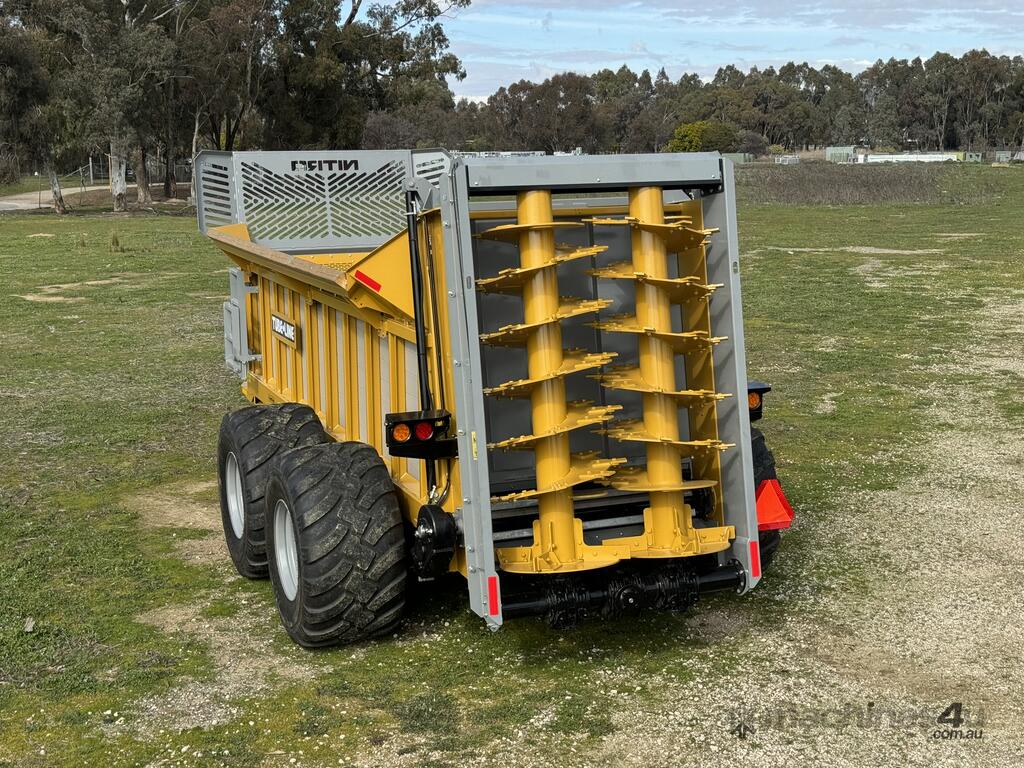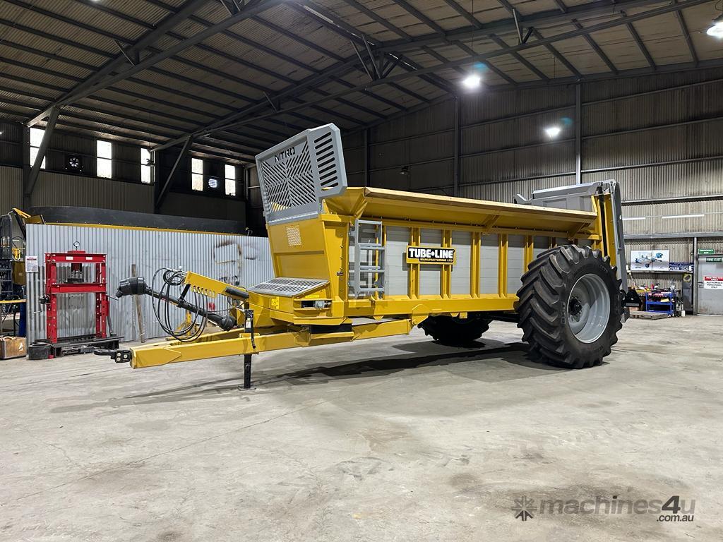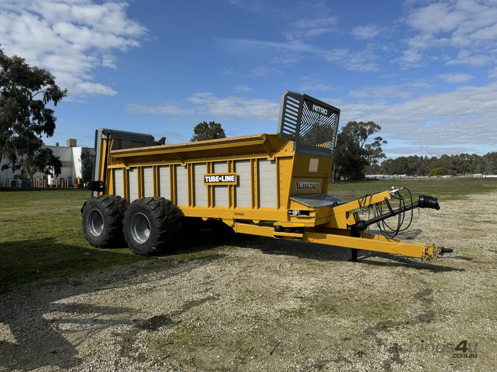 The NITRO spreader from Tubeline originally started with the 450, 600, and 750 models followed by the 950 model shortly after the initial product launch. Developed with features to ensure commercial readiness these spreaders offer slip slide poly board floors and walls, a guillotine endgate, reversible apron chain, and quick drop beaters. Engineered for commercial use, our commercial line are all scale ready. The guillotine endgate can be held in any position controlling how much material is able to be moved to the beaters by the variable speed apron chain. This method of delivery provides consistent metering whether working with pen pack or semi-solids.