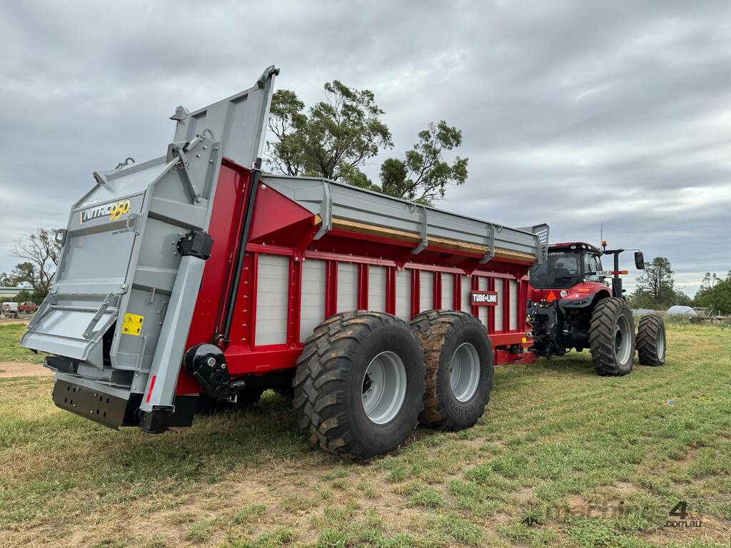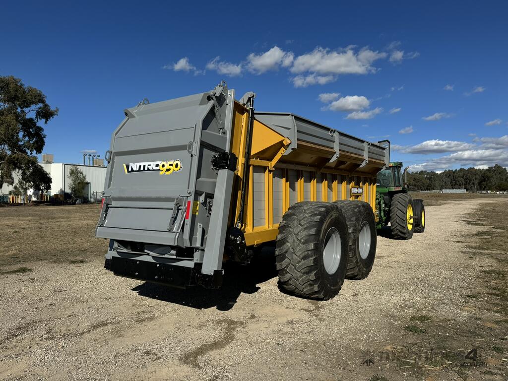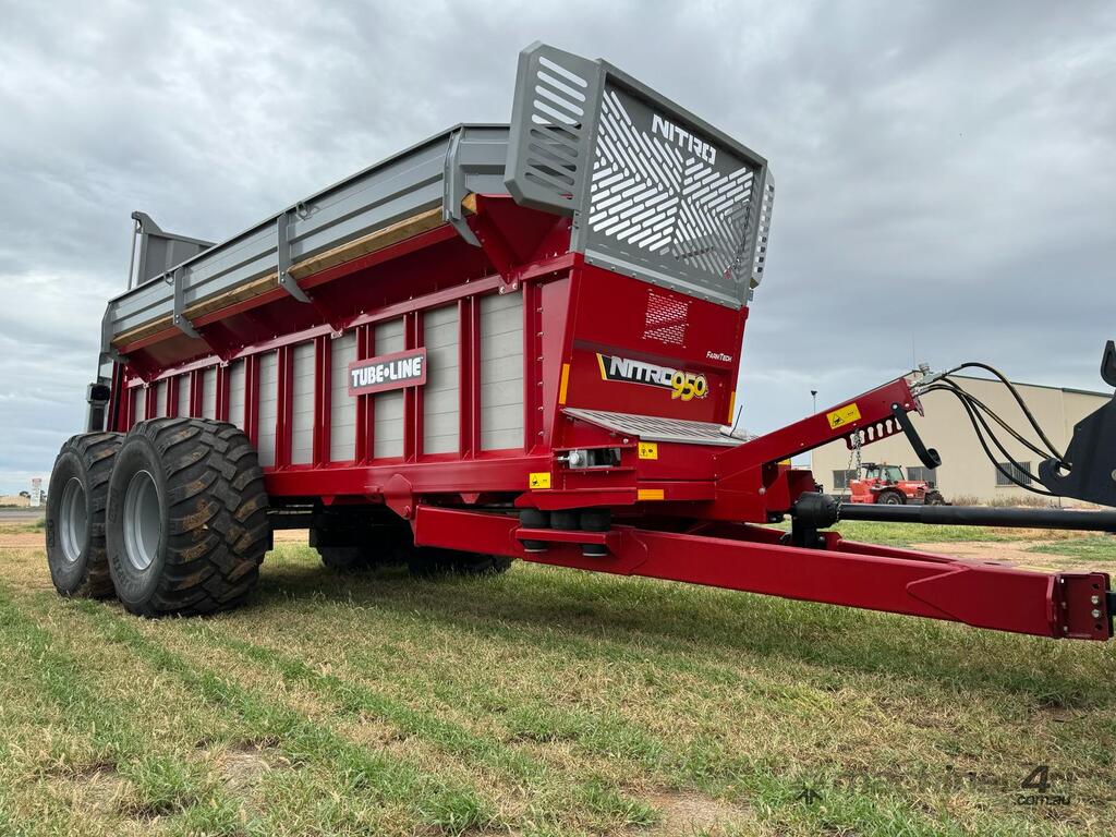 The NITRO spreader from Tubeline originally started with the 450, 600, and 750 models followed by the 950 model shortly after the initial product launch. Developed with features to ensure commercial readiness these spreaders offer slip slide poly board floors and walls, a guillotine endgate, reversible apron chain, and quick drop beaters. Engineered for commercial use, our commercial line are all scale ready. The guillotine endgate can be held in any position controlling how much material is able to be moved to the beaters by the variable speed apron chain. This method of delivery provides consistent metering whether working with pen pack or semi-solids.