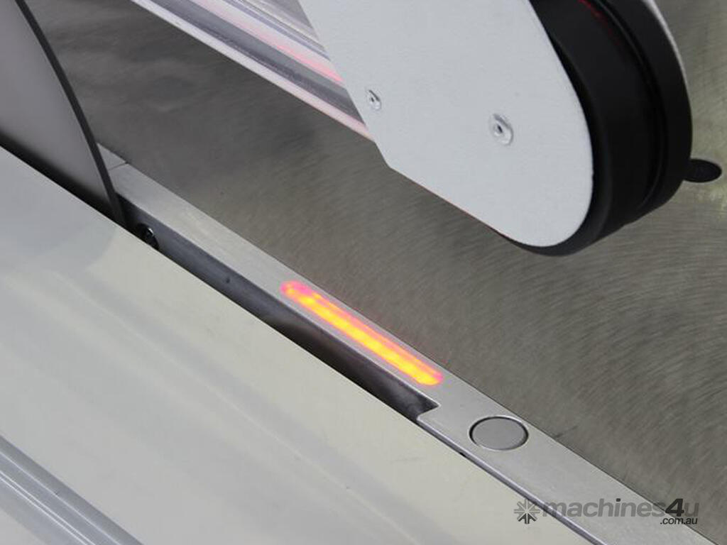 Heavy Cast Iron Sawing Unit with electronically balanced shafts to ensure vibration free operation. The heavy closed ribbed design of the saw unit ensures long lasting clean cutting operations. The saw unit moves on precision THK guideways and features a multi-v belt for superior grip. The saw unit can house a massive 500mm or optional 550mm Blade!