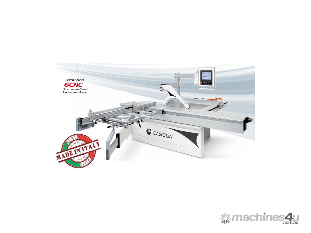 The Astra 500 6 AXIS Panel Saw offers the famous Casolin Chromed Rod sliding table for the smoothest operation for a life time. Choice of 2600, 3200, 3800, 4000 & 5000mm Sliding Tables all on chromed rods and a huge 400mm wide. There is no better sliding table on the market.