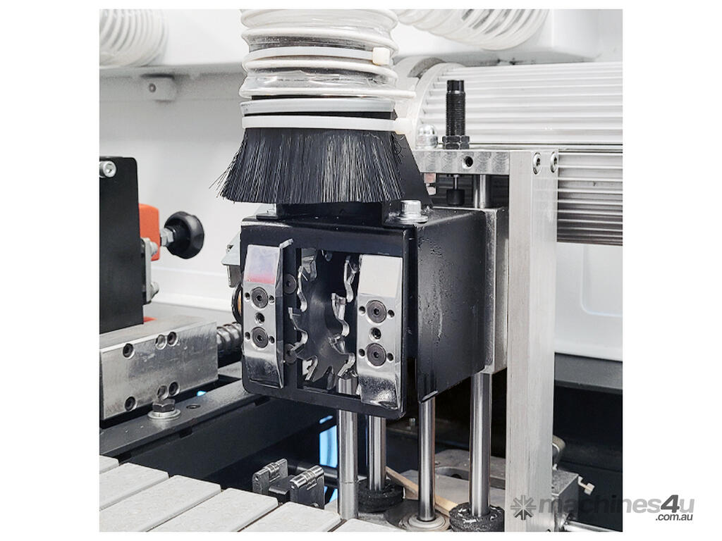 The pre-milling diamond cutterheads machine the panel prior to applying the glue to ensure optimum edge quality prior to applying the edge tape.
