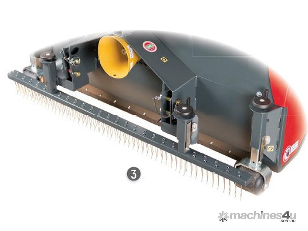 TurfKing TK1502 brush and vacuum system guarantees clean sports surfaces and optimum playing conditions. Conventional brush rows and/or drag mats are not suitable for thorough cleaning of floor coverings/deep cleaning and loosening of sand-filled and/or rubber-filled artificial turf. The 3-point rear-mount type accessory for compact tractors goes with any type of tractors with a power of at least 20 to 25 HP and combines all important basic functions in one machine. The device compact and easy to connect.