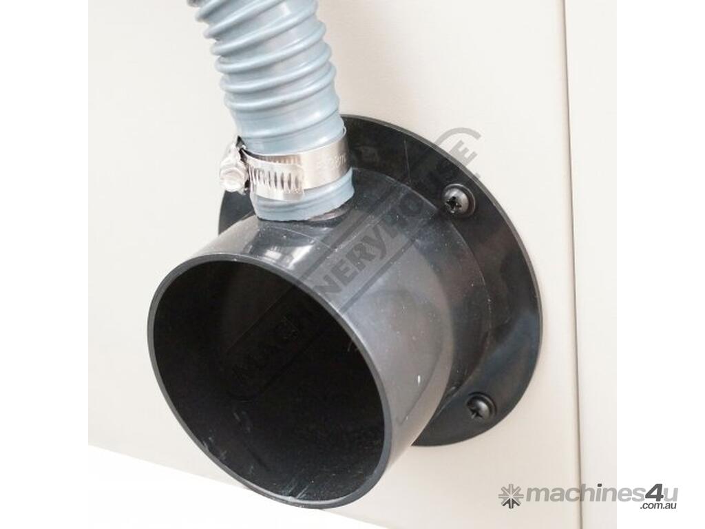 Dust extraction at the top of the blade as well as 100mm chute from the enclosed stand