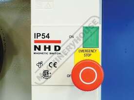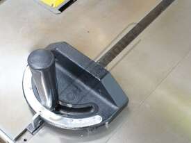 The main table is extremely heavily webbed cast iron which provides a rigid mounting point to connect the trunnion mechanism to support the 305mm main blade. The induction motor power is provided by a 3.75kW / 5hp 415V via three A-section belts that will drive the blade through the most stubbornness timbers. The heavy-duty fence securely locks onto the front and rear of the extra-long square metal tubes to allow a huge 1220mm ripping capacity.