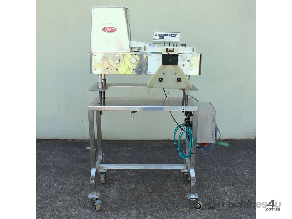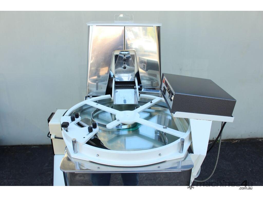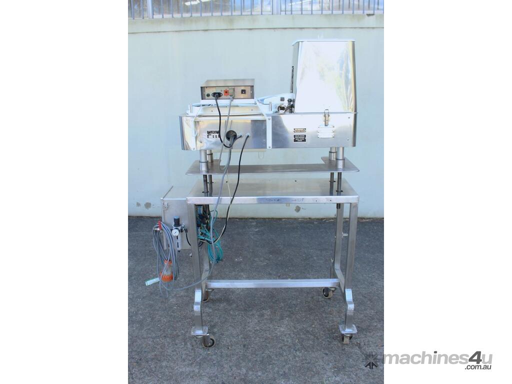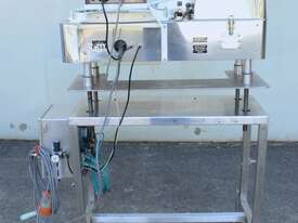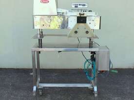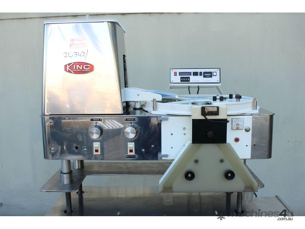 Tablet Counter, "King" Model TB4 GMP, feeding hopper and vibrating guide rail, counting station with photocell, electronic counter with display, stainless steel turntable, structure in polished stainless steel, single phase, mounted over a stainless steel trolly