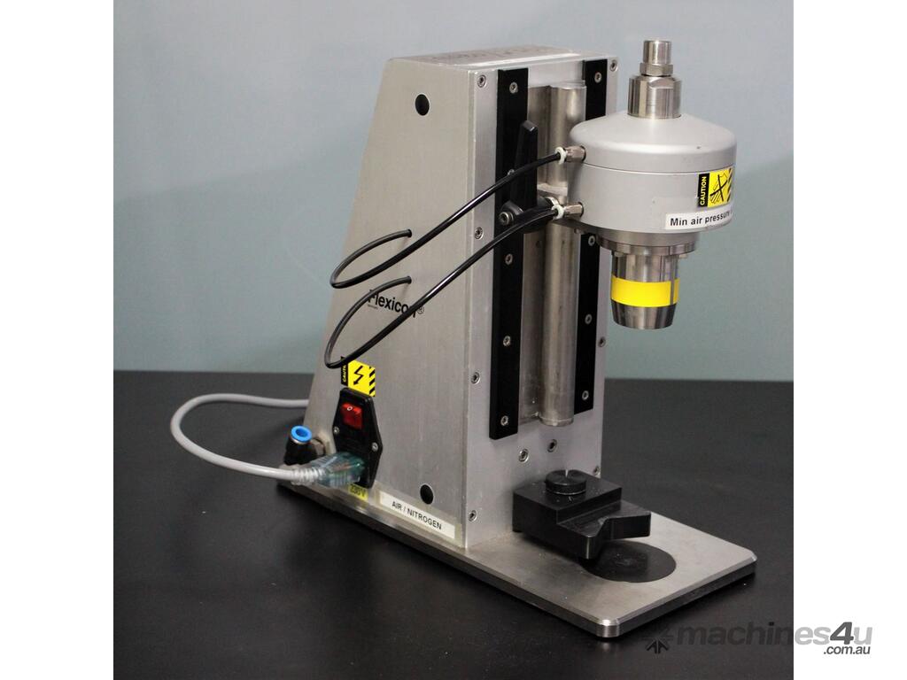 Tabletop Semi-Auto Crimp Capping Machine, "Flexion" Model FS10, cap size range 8-20mm DIN, bottle size: 55mm dia max & 180mm max height, complete with 13mm flip top crimp head and bottle tool 14-38mm, single phase