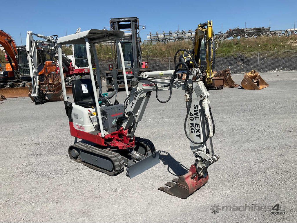 No C/P,Takeuchi,TB108,Excavator (Rubber Tracked),Engine #: E0836,2 Cyl,Diesel,Odometer not visible,526 (Hrs. Showing on Hour meter),Colour: Grey,Rego. No: NP(1), Unregistered NSW,Serial No: ,Sold with No Plates,Key No: 295E