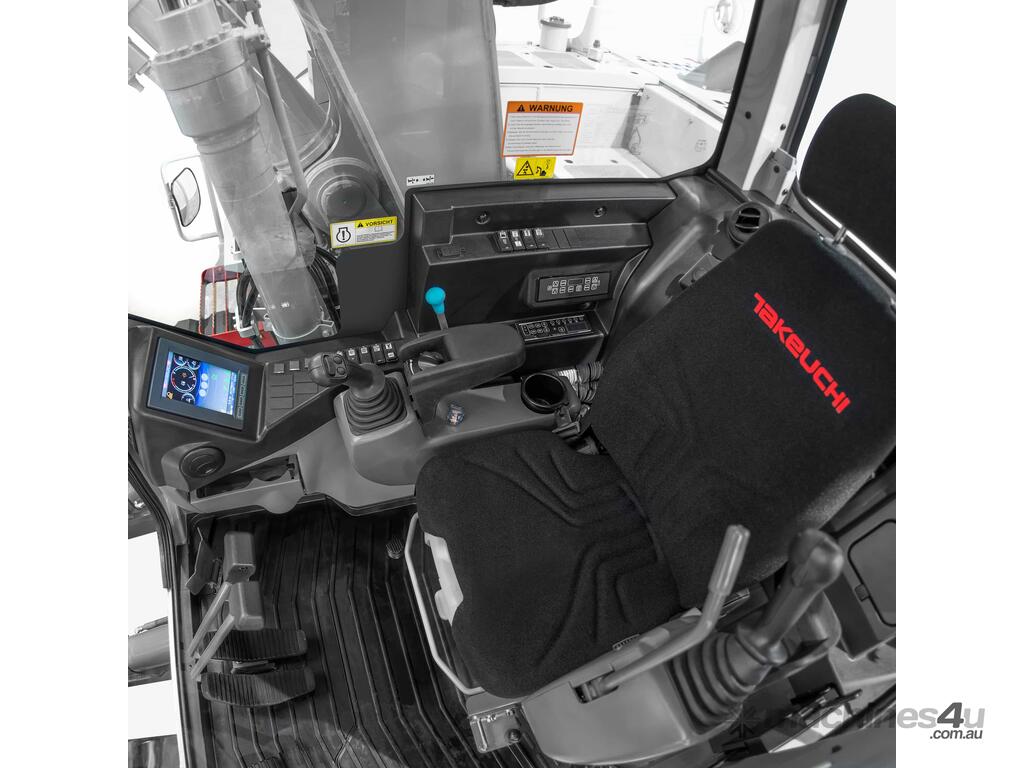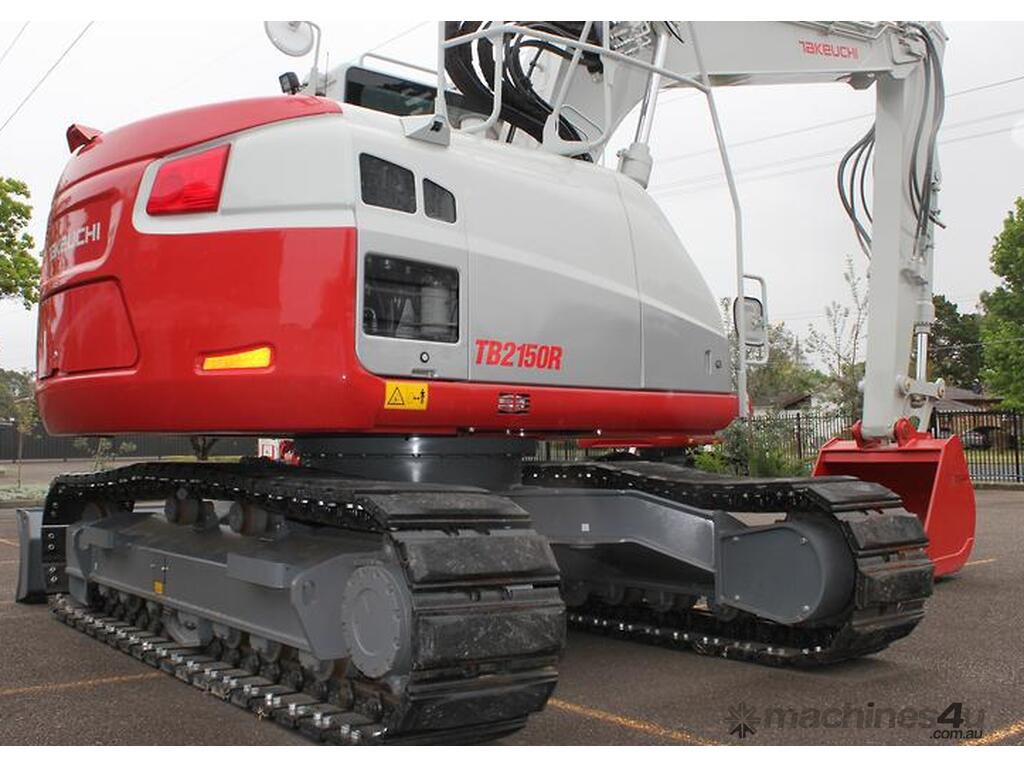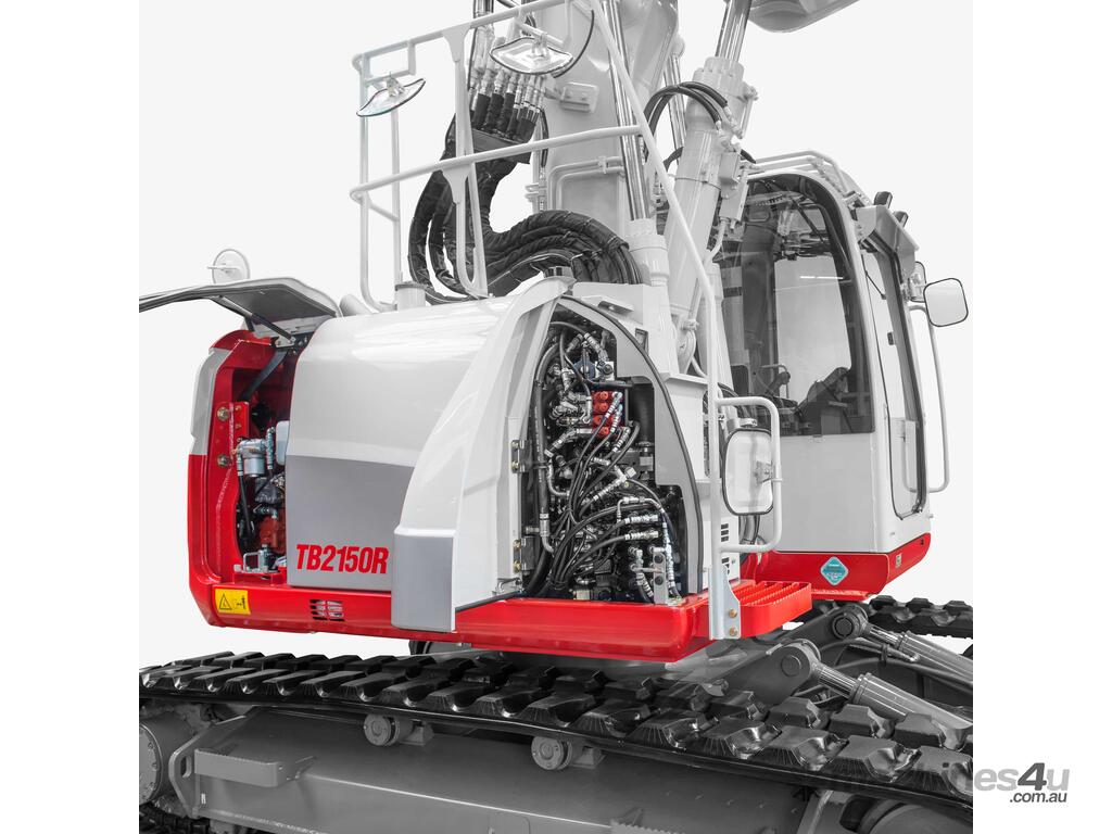 The TB2150R is the largest excavator in the Takeuchi line up. It features a fixed boom for greater stability and allows the operator to carry heavier loads. The TB2150R comes standard with a mono-boom that provides best in class digging depth (2-piece boom is optional). A 85 kW engine powers the TB2150R and it meets the very latest EU emissions standards. This engine also utilizes a DOC + SCR diesel exhaust after-treatment system. A redesigned operator’s station features a 7" color intuitive multi-informational display, radio with Bluetooth capabilities, and an optional deluxe high back air suspension seat to keep the operator comfortable throughout the year. The TB2150R features a large wraparound counterweight, a rear view camera, and multiple LED working lights located on the boom, cab, and front cover. This machine has multiple auxiliary hydraulic circuits that makes it the perfect attachment platform that will provide the operator the power and durability needed to complete the toughest jobs. With 6 Locations Australia - wide, exclusive dealer of Takeuchi Machinery