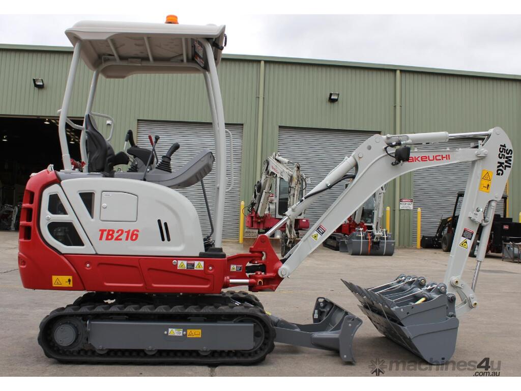 The Takeuchi TB216 Excavator has a wide range of features to make any job easier. Standard equipment includes an improved multi-informational display, two-speed travel, pilot operated joystick controls, a high capacity cooling system, and convenient filter and service access.
