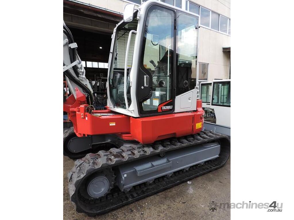 The Takeuchi TB280FR Excavator is a unique platform that separates itself from the competition with its unique side-to side (STS) boom configuration and full rotation (FR) capabilities. One of the greatest benefits of the STS boom is the unmatched visibility to the attachment and job site. This design also allows the boom to be stowed over center in the full upright position enabling it to make a full rotation (FR) within a very tight radius allowing it to work within similar confines as a smaller 5 ton machine for greater performance and productivity. Additional features include an updated cabin with automotive styled interior, color multi-informational display, multiple attachment presets with operator adjustable flow rates, standard auxiliary hydraulic circuits 1 & 2 allowing the operator to run a wide range of attachments, backfill blade and a tilt-up cab for greater serviceability.