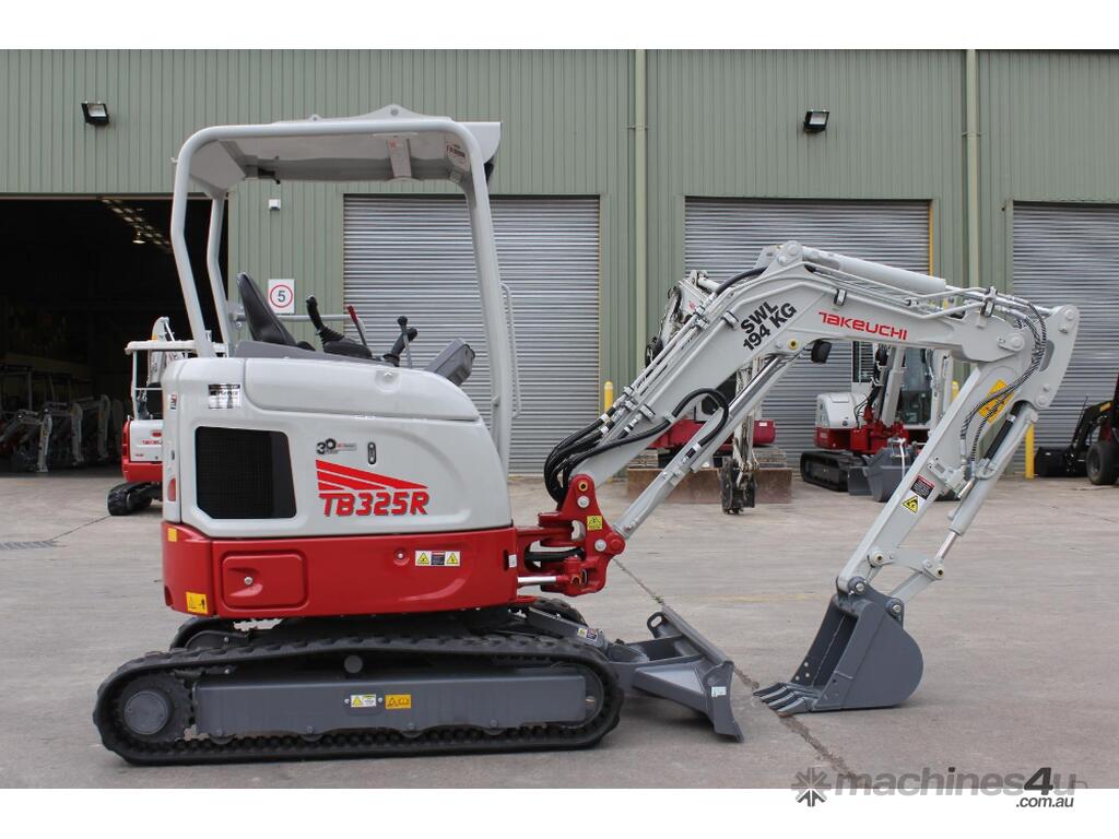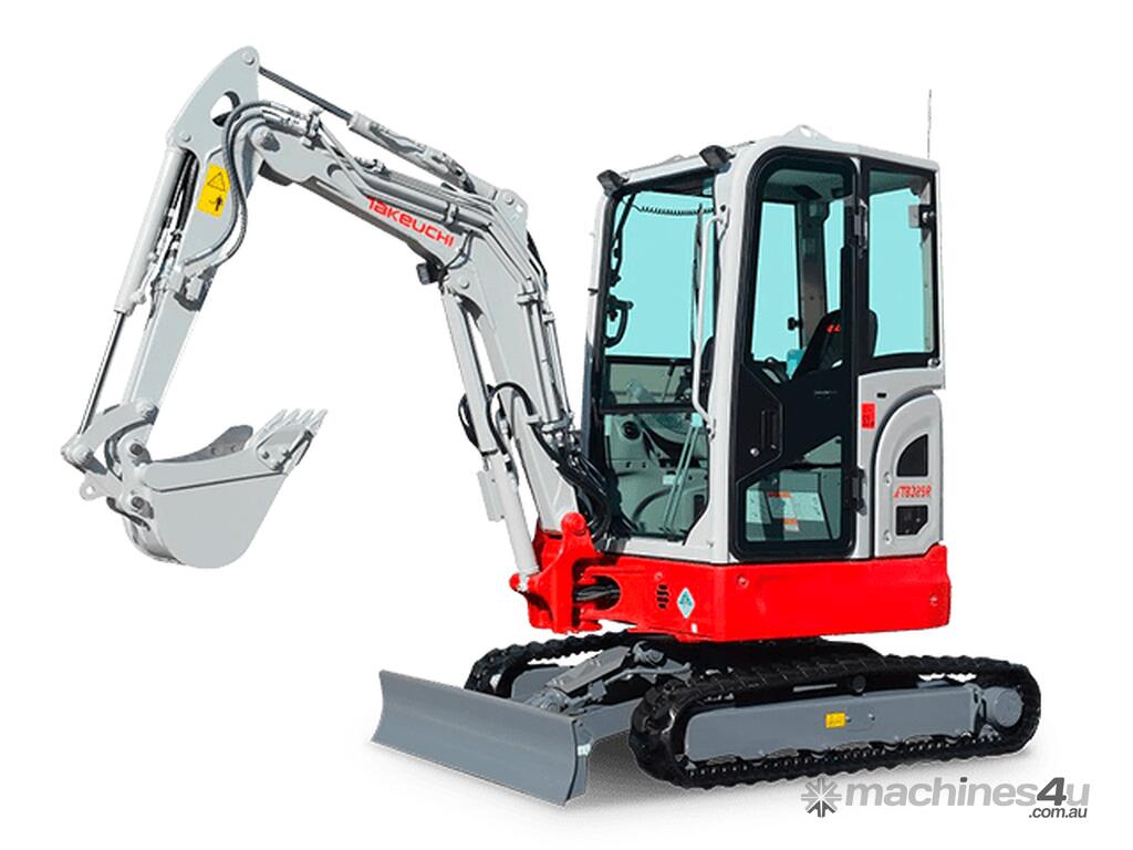 The Takeuchic TB325R 2.4T Excavator is the newest addition to Takeuchi’s 300-Series excavator line-up. This new model features a short tail-swing design which decreases the amount of overhang from the counterweight resulting in improved manoeuvrability and increased productivity on confined job sites.