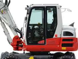 Takeuchi prides itself on continuous product improvement and refinement. This is evident in the TB395W which features a deluxe high definition color touch screen monitor, as well as a jog dial that allows the operator to easily navigate various functions that include the DAB radio with Bluetooth functionality and HVAC settings. An optional 270 degree camera system provides the operator greater peace of mind by delivering a much better field of view around the rear and sides of the machine. LED head lights and tail lamp provide excellent visibility in low light conditions. The TB395W wheeled undercarriage is now available in optional, four wheel, or crab steering modes allowing the operator to choose the mode that best fits their application. Auto cruise control enables the operator to set and adjust travel speed in both low and high range by setting the desired speed via the rocker switch set button or through the optional multi-function grip, and it is ideal for attachments that require a consistent travel speed such as a masticator or mower. Serviceability of the TB395W is unmatched with the overhead opening engine hood and right side cover ensuring that daily inspections can be carried out timely and efficiently to minimize downtime.