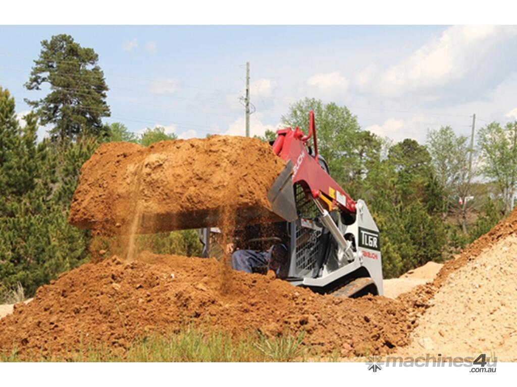The Takeuchi TL6R Track Loader features open canopy, a radial lift loader design and meets all current emission standards. With a height of 6 ft 5.8 in and a width of just over 5 ft the dimensions of the TL6R Track Loader allow it to excel on job sites that may have height and width restrictions. This Takeuchi track loader comes with a newly designed cabin with an overhead 5.7" color multi-informational display and backlit rocker switches that control a variety of machine functions. The Takeuchi TL6R comes standard with a quiet track design with flotation pads that reduces vibration, noise levels, and improves ride quality.