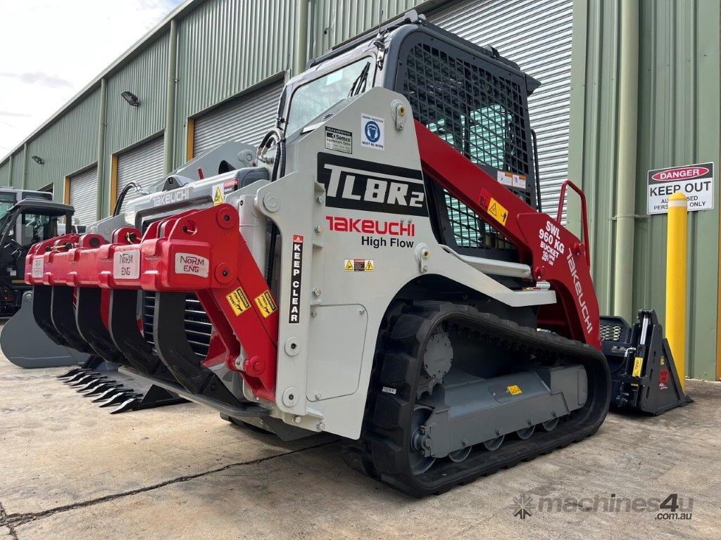 The completely redesigned TL8R-2 is powerful, efficient, and engineered to provide excellent performance, durability, and value. Standard features include open canopy, two-speed travel, pilot operated joystick controls, a large color multi informational display, and quiet ride track system. The TL8R-2 has a spacious cabin with an automotive styled interior that includes a deluxe high back suspension seat, electronic throttle control, rocker switches for a wide variety of machine functions, 12 volt outlet, and cup holder. A heavy duty rear door protects vital engine components and swings out to provide access to the high capacity, side-by-side cooling module with coolant sight glass, engine oil filter, engine oil fill and dipstick, fuel/water separator, and dual element air cleaner. With the cabin tilted up the primary and secondary fuel filters, DPF, pilot filter, pump group, and control valve can be inspected and serviced as needed. Creep mode is an optional feature on the TL8R-2. This feature will enable operators to precisely match the forward speed of the track loader to a particular attachment without having to constantly meter the travel lever. Creep mode is ideal for attachments that require a consistent, repeatable travel speed, such as a cold planner and trencher.