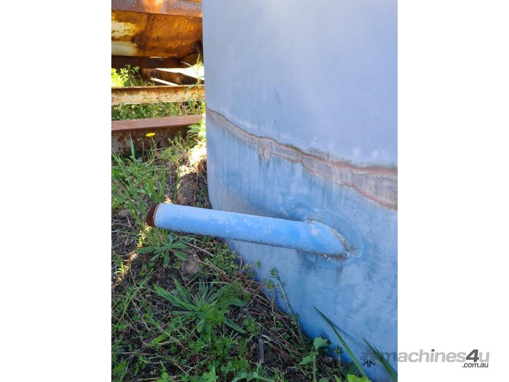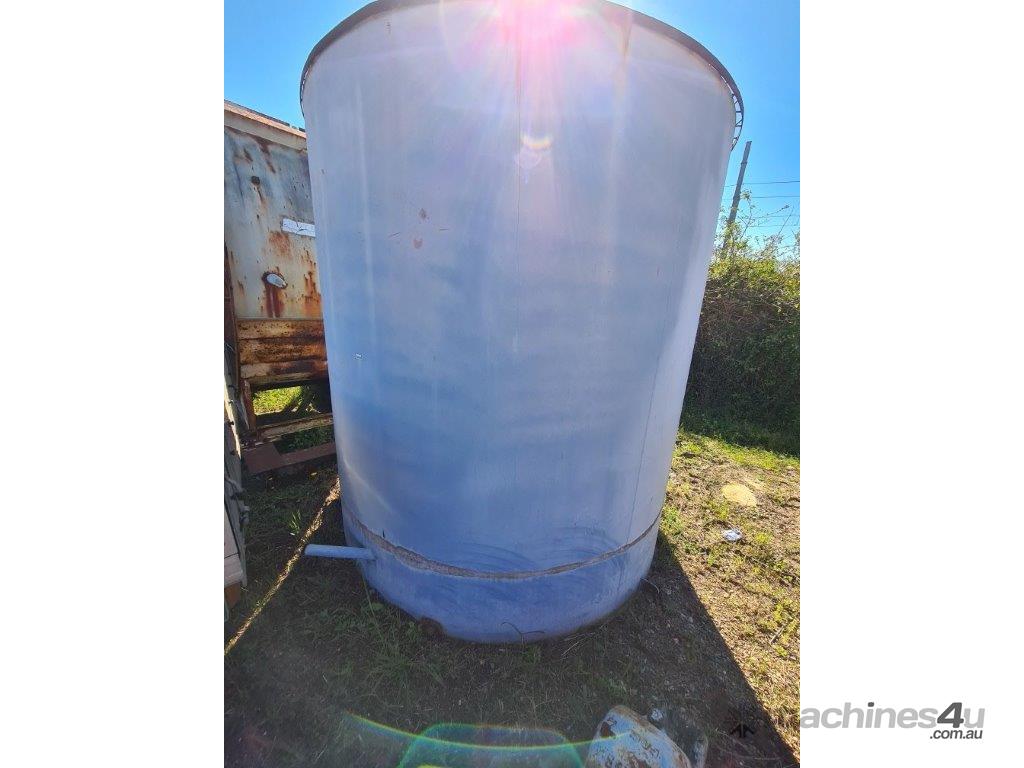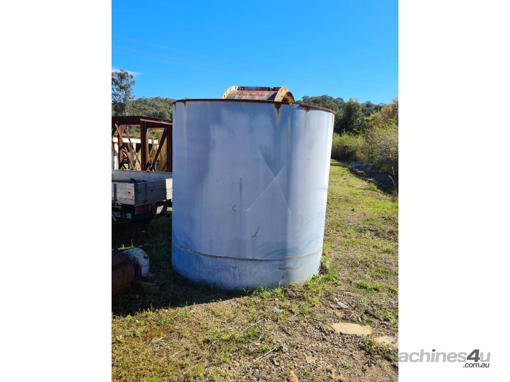Tank, approx 7m³, 2200 mm x dia x 1850 mm tall, conical bottom with 2 x 50 mm discharge pipes. Has top safety cage and internal steps/treads for internal access. Includes s/s stirrer shaft (no motor).