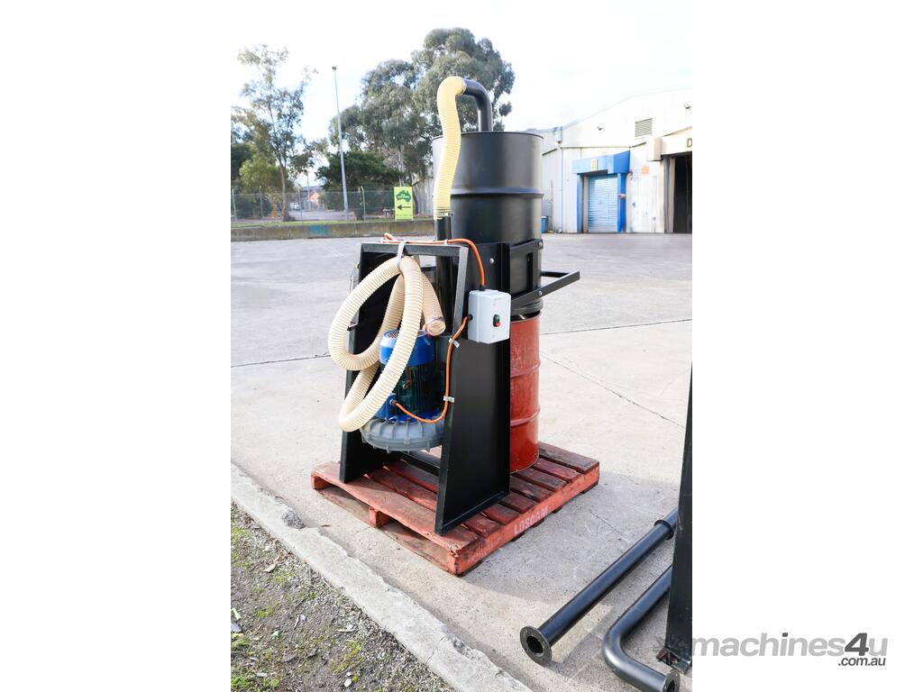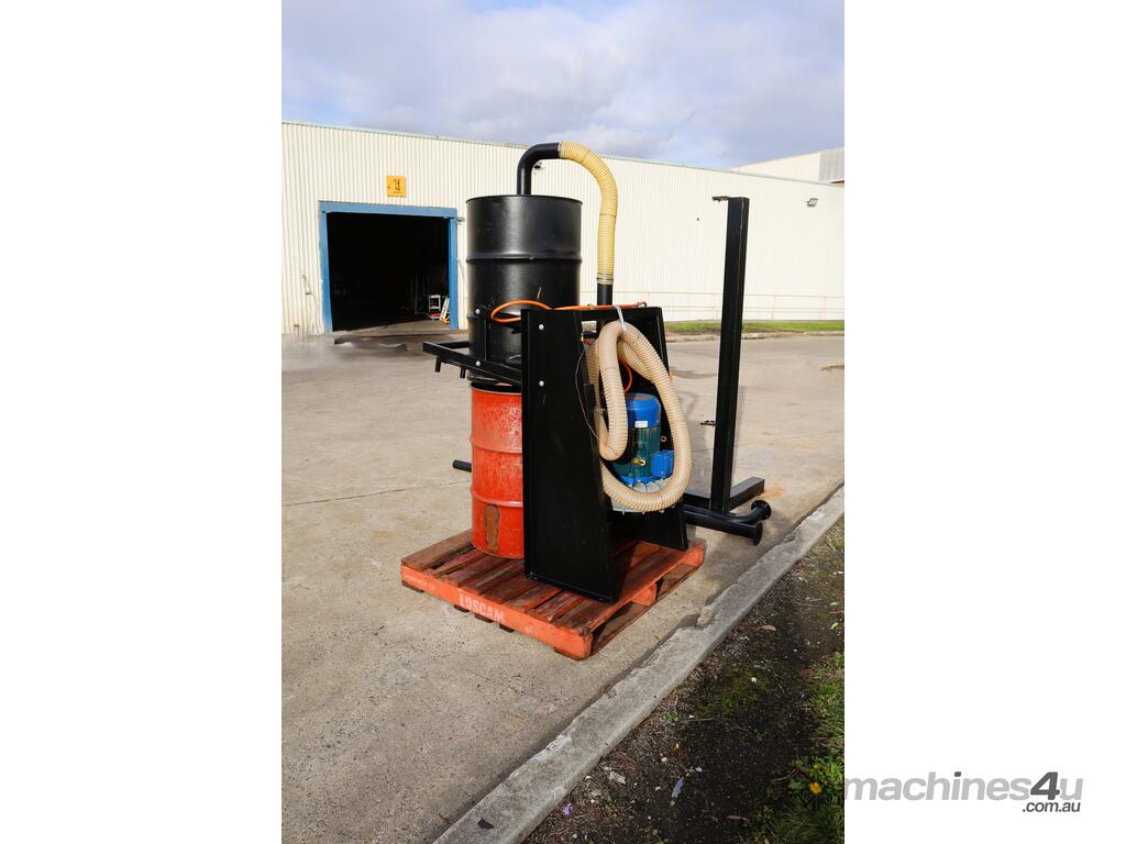 Tekcel heavy duty extraction system in good condition. Suitable for a variety of applications such as plastics, dust, and even wet metal waste from profiling. Slim and tall profile with small footprint. Discharge uses standard 210L metal drum, so it's easy to replace if required.