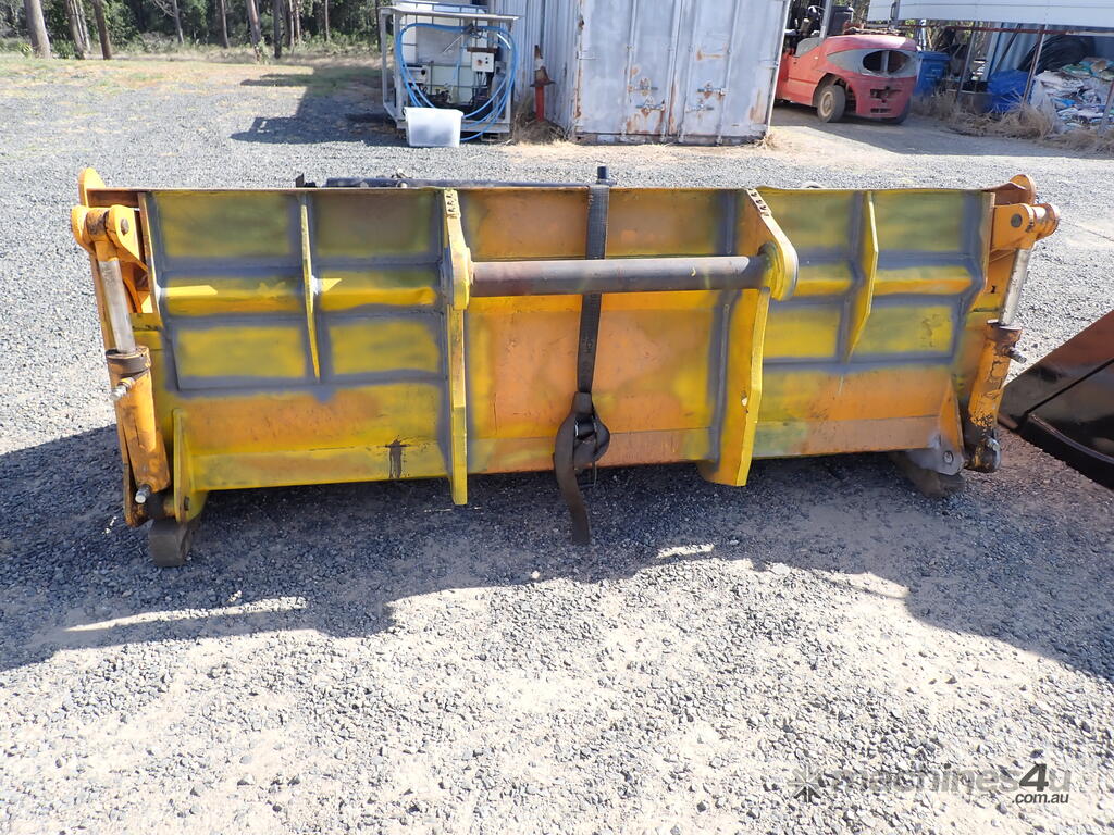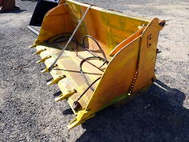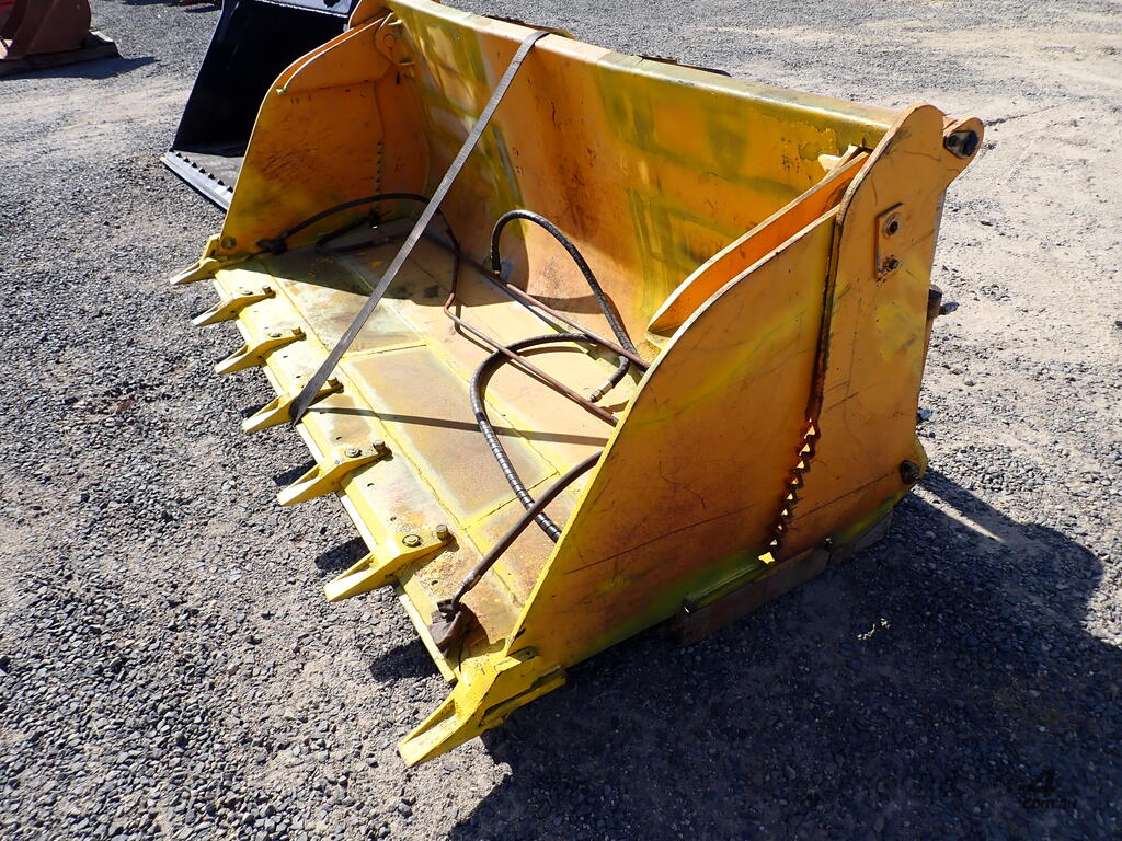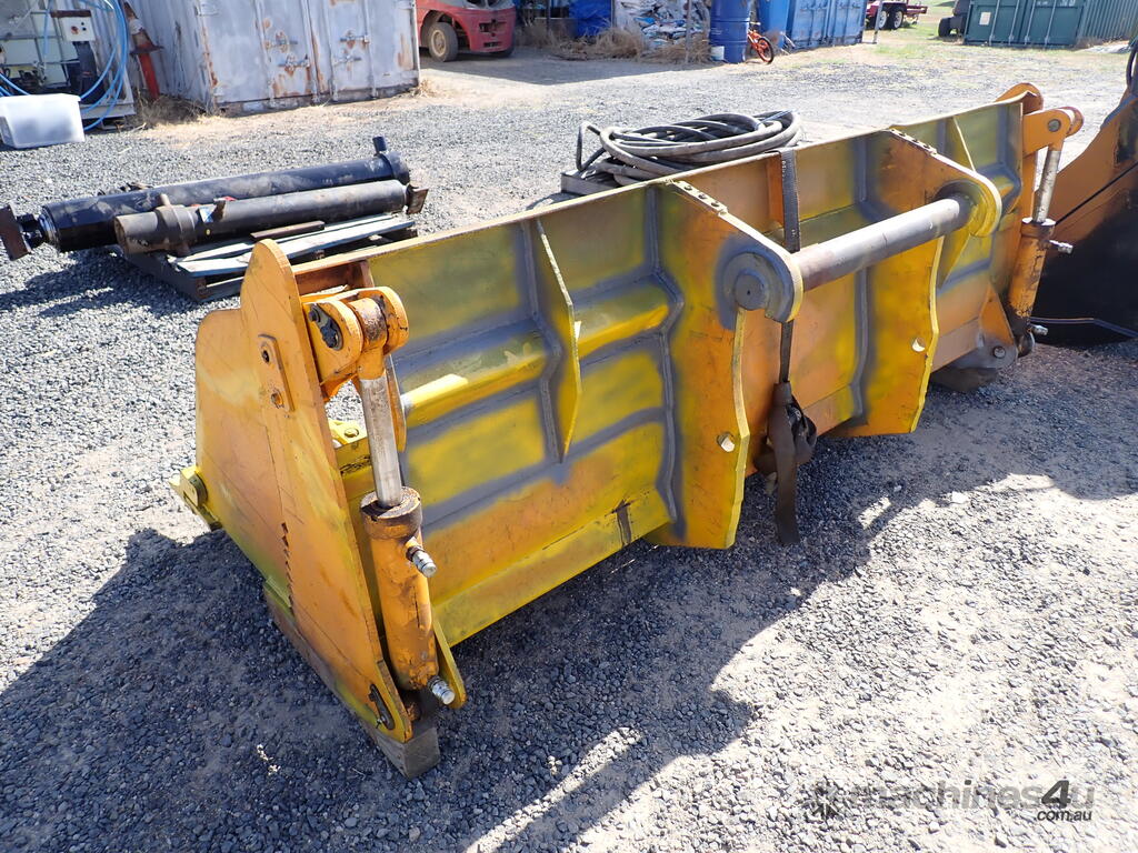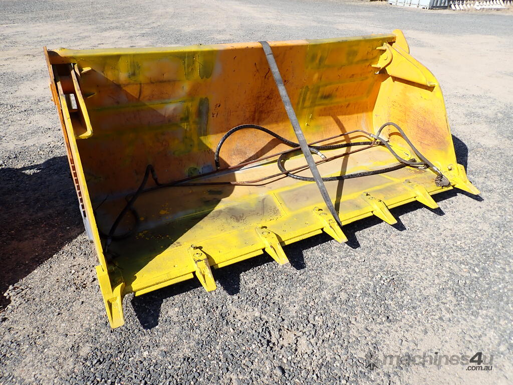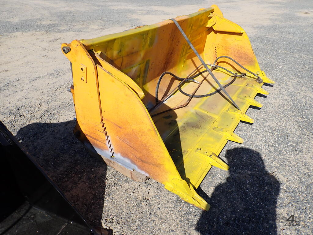 Telehandler 4in1 bucket, Victory brand, modified to suit a Manitou telehandler, 2.48m wide , with 7 teeth, 4in1, has pipes and hydraulic hoses , 350mm from center of top pin to center of pin hole, 40mm diameter pin hole, 80mm diameter top pin, 720mm between ears, in fair condition, hoses & pipes are loose in the bucket.