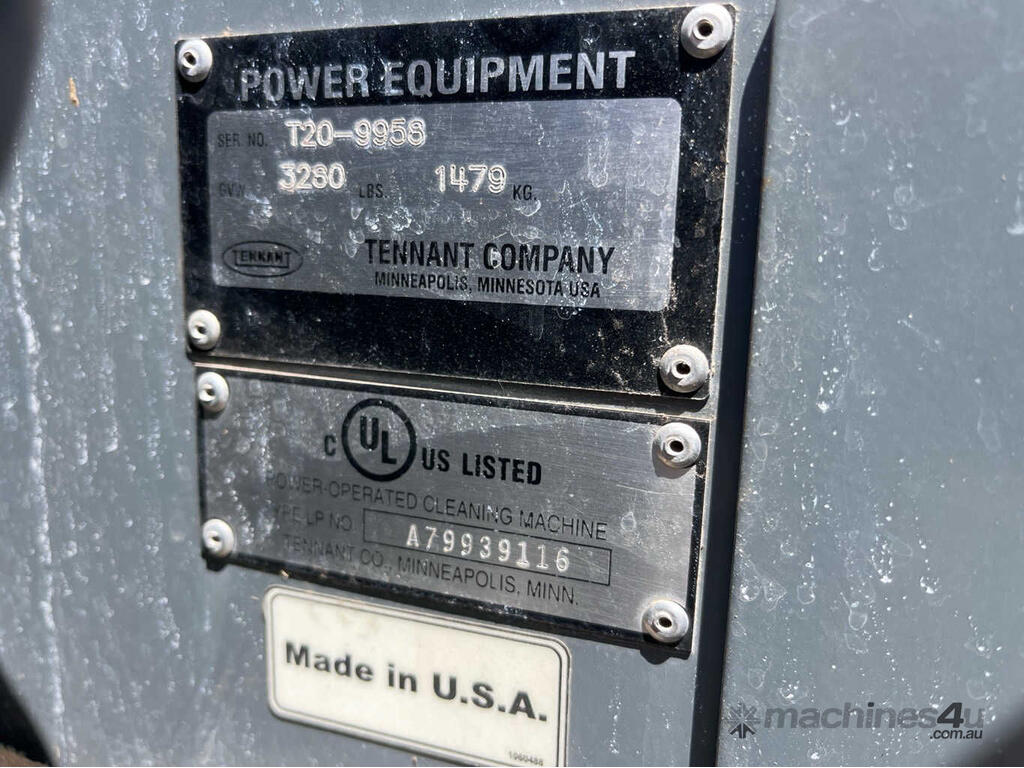 No C/P,Tennant,T20 ES,Sweeper,4 Cyl,Odometer not visible,Hourmeter not visible,Colour: Blue,Unregistered,Serial No: T20-9958,Sold with No Plates