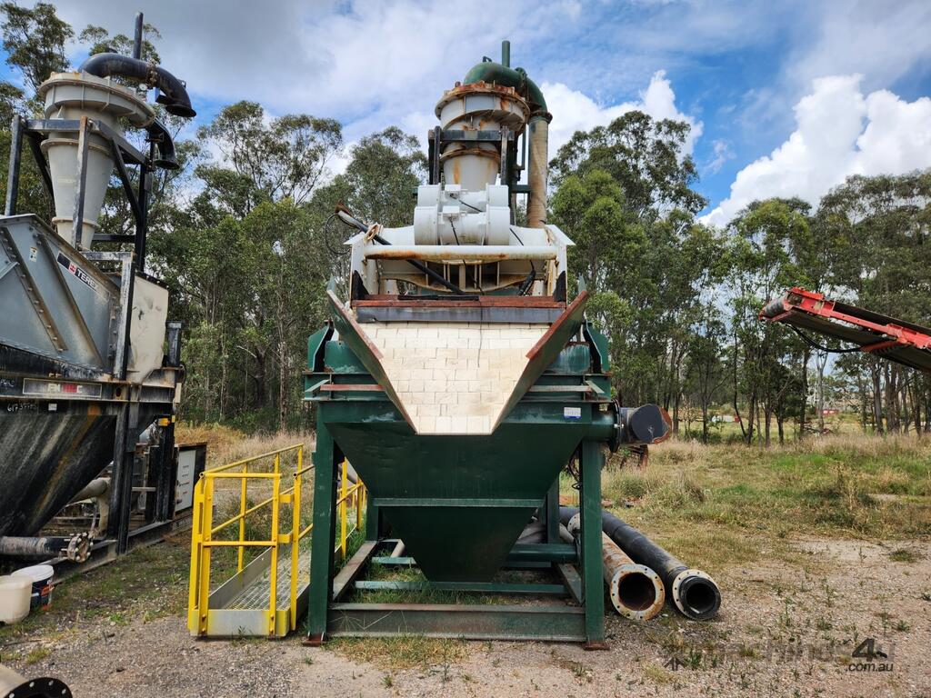 Terex FM120 Screen Dewaterer,Top Mounted Cyclone, Feeding To Vibratory Screen, Bottom Mounted Hopper Outlet, Electrical Control Panel, Warman 200/150D 150mm Pump Powered By WEG 30kW 3 Phase Electric Motor, Access Platform & Stairs, E-Stop, Skid Mounted. Note: used item, condition unknown, inspection recommended. Note: Buyer to arrange own lifting equipment as lifting equipment is not available on site. Approx. Overall Dimensions 6500mm (L) x 2900mm (W) x 6900mm (H).Please note Load Carrying Vehicles (LCVs) using 4 axles (or higher) or that weigh over 49 tonne loaded require an Oversize Overmass (OSOM) Permit to drive on Range Rd. Buyers are responsible to ensure they / their transporter knows their vehicle mass loaded and obtain the required Oversize Overmass (OSOM) Permit from the Authority before arriving to site at Range Road to collect. Failure to comply with required permits will result in your transport being refused entry to the site.
