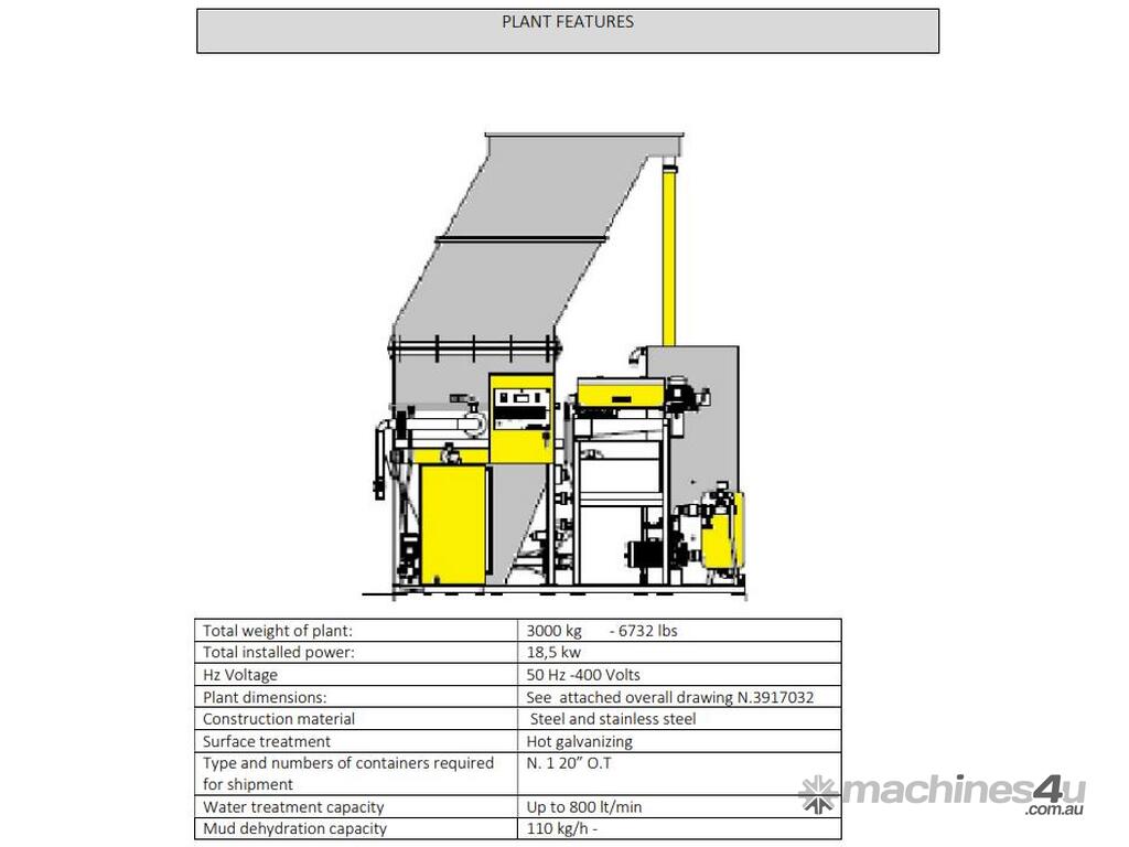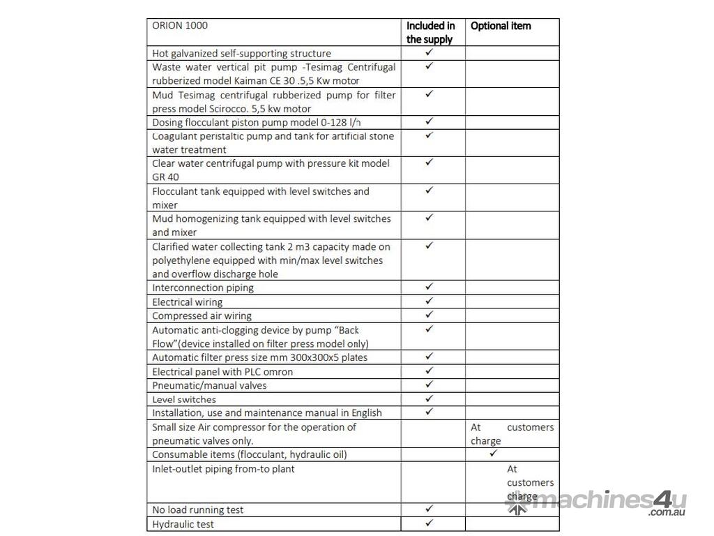 Tesimag proposes waste water treatment plant "plug & play" suitable for the stone workshops that process either natural or artificial stone. Tesimag plants have the main purpose to supply customers with a complete, turn key plant, pre-assembled to operate. The treatment capacity is up to 750/800 l/min. The plant works fully automatically.