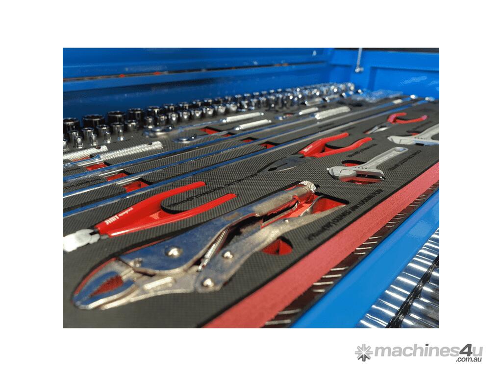 This 27 drawer tool kit from Jimy Tools is the perfect place to start if your new to the mechanical trades or an old hand this tool kit consists of a 7 drawer top box, 11 drawer roller cabinet, 7 drawer side box and 1 full height side cabinet with 3 shelves and 2 drawers. It comes with a full complement of sockets in 1/4” 3/8” & 1/2” square drives Short and Deep with all the extension bars, ratchets and breaker bars to suit. Also included are ROE spanners in metric and SAE, pliers, screwdrivers, Allen keys etc. check out the full list of contents below. With the high density foam drawer inserts you can easily see if you have left a tool on the job.