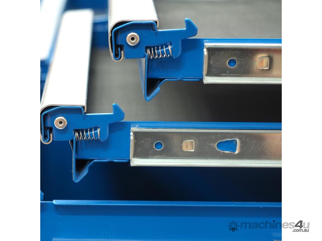 Jimy tool boxes are built to last with a tough industrial powder coating, 1.0mm thick steel, fully lockable with a rear internal locking system, dual gas strut system for lidbearing slide drawers with twin slides on the deeper drawers. The drawers also have a Click-Lock mechanism to ensure drawers don’t push open during the movement of the tool box.