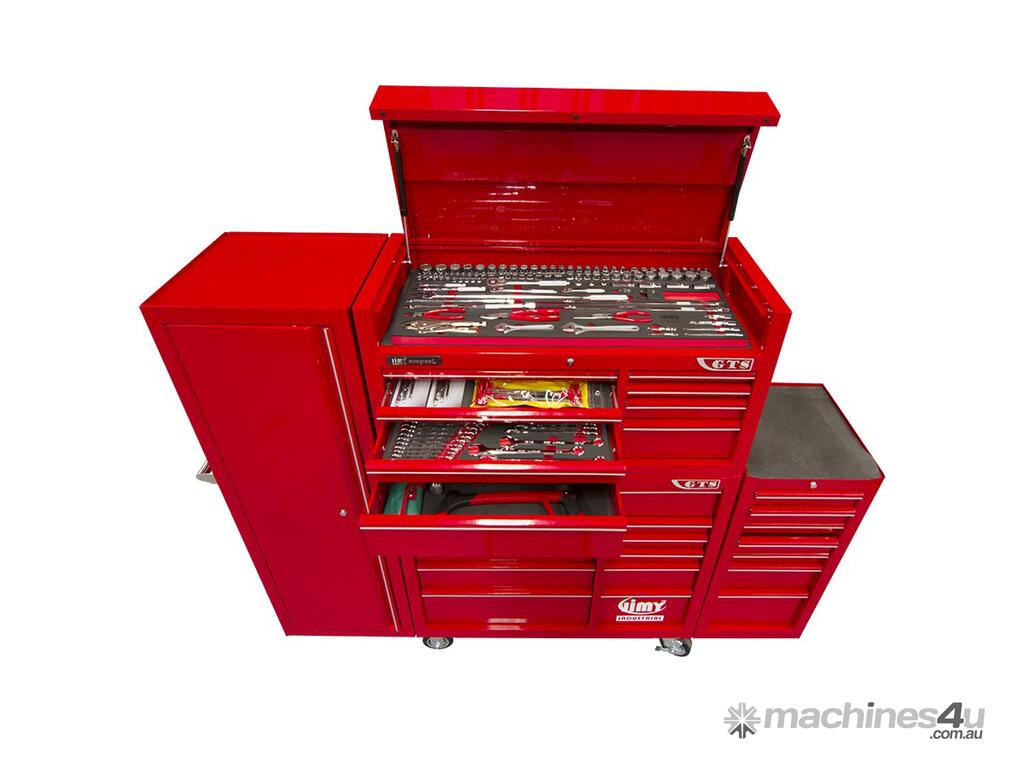This 27 drawer tool kit from Jimy Tools offers a wide range of tools for the trade’s person. This tool kit consists of a 8 drawer top box, 11 drawer roller cabinet, 7 drawer side box and 1 full height side cabinet with 3 shelves and 2 drawers. It comes with a full complement of sockets in 1/4" 3/8" & 1/2" square drives Short and Deep with all the extension bars, ratchets and breaker bars to suit. Also included are ROE spanners in metric and SAE, pliers, screwdrivers, Allen keys etc. check out the full list of contents below. With the high density foam drawer inserts you can easily see if you have left a tool on the job.