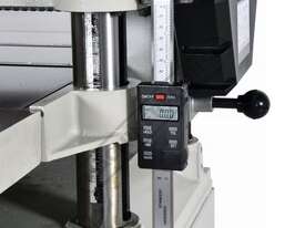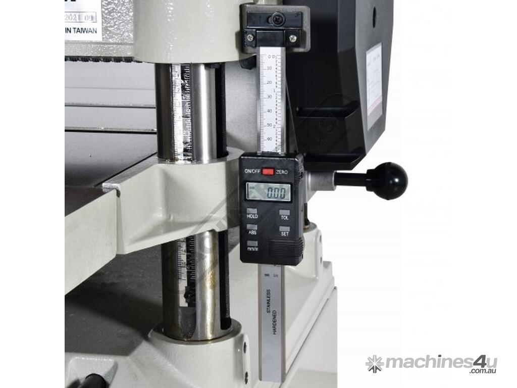 The T-380A is equipped with a spiral cutter head that includes 68 carbide inserts which are easily indexed or replaced, just simply use the tool screw key that's provided to unscrew the individual insert to be replaced as there is no fiddly height setting to be carried out. The cutter head is supported by 4 x solid pillars at each corner and the steel drive rollers have ribbing to ensure positive grip on the timber through the machine via two speed gearbox at a rate of 16 or 20fpm. The feed roller pressure can be adjusted with the four adjusters on the top of the machine. The depth of cut is set by means of the cranked handle on the side using the setting scale positioned on the in-feed side or digital readout.