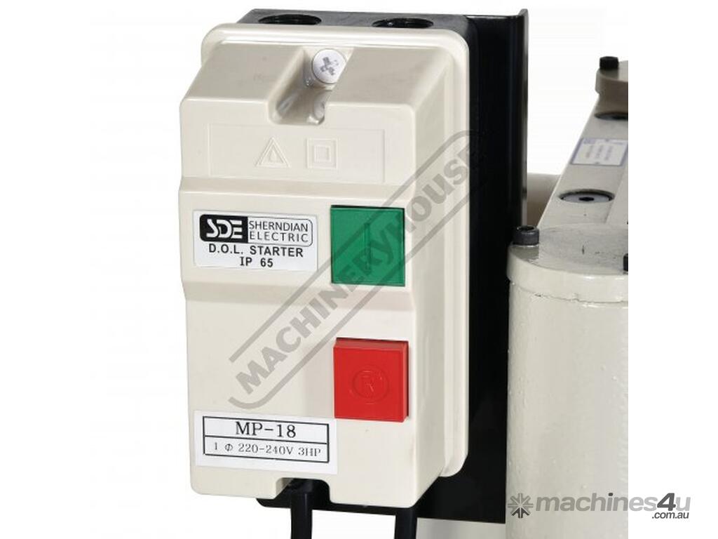 Power is provided by a 1500W / 2hp 240V induction motor, housed within the base and transmitting power to the cutter block via a twin pulley vee belt drive system.