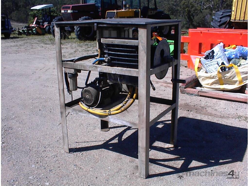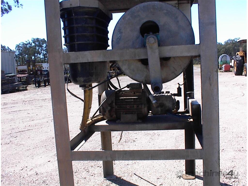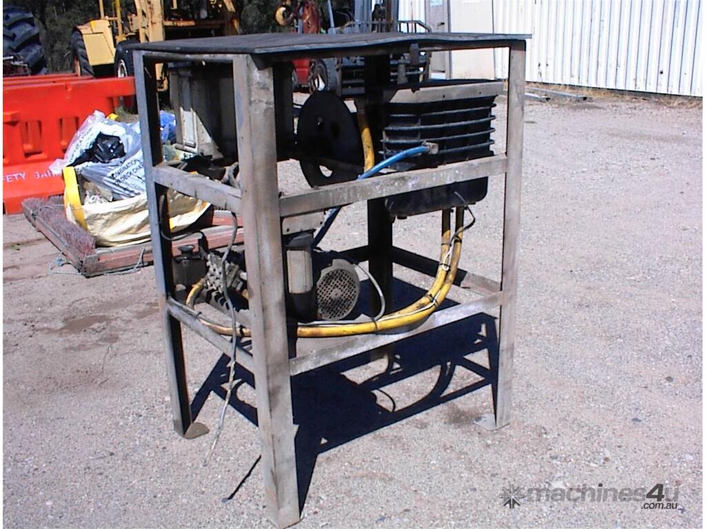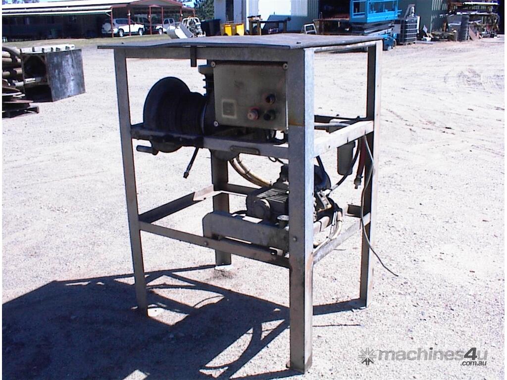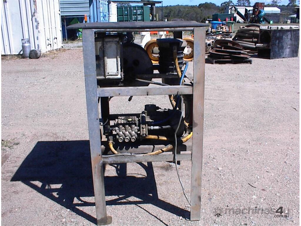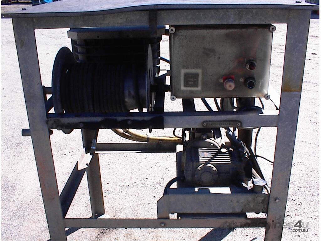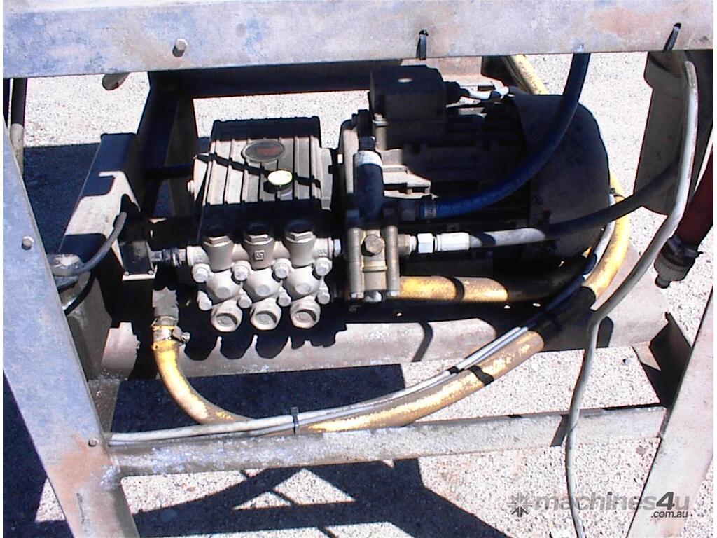 Thoroughclean electric pressure washer, 3 phase 415 Volt, 3 cylinder piston pump, hose reel, filter, header tank with low water cut off switch, switch box, mounted in galvanized steel frame, has been previously hardwired in , no plug, no gun, well set up solid unit, appears to be in fair condition.