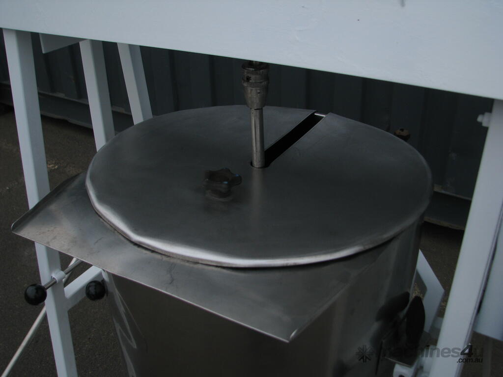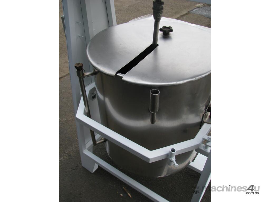 The tank is jacketed. Has tilting functionality to tip contents of tank.