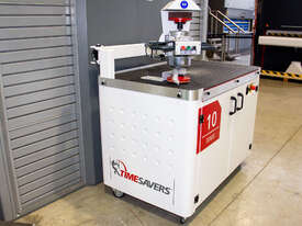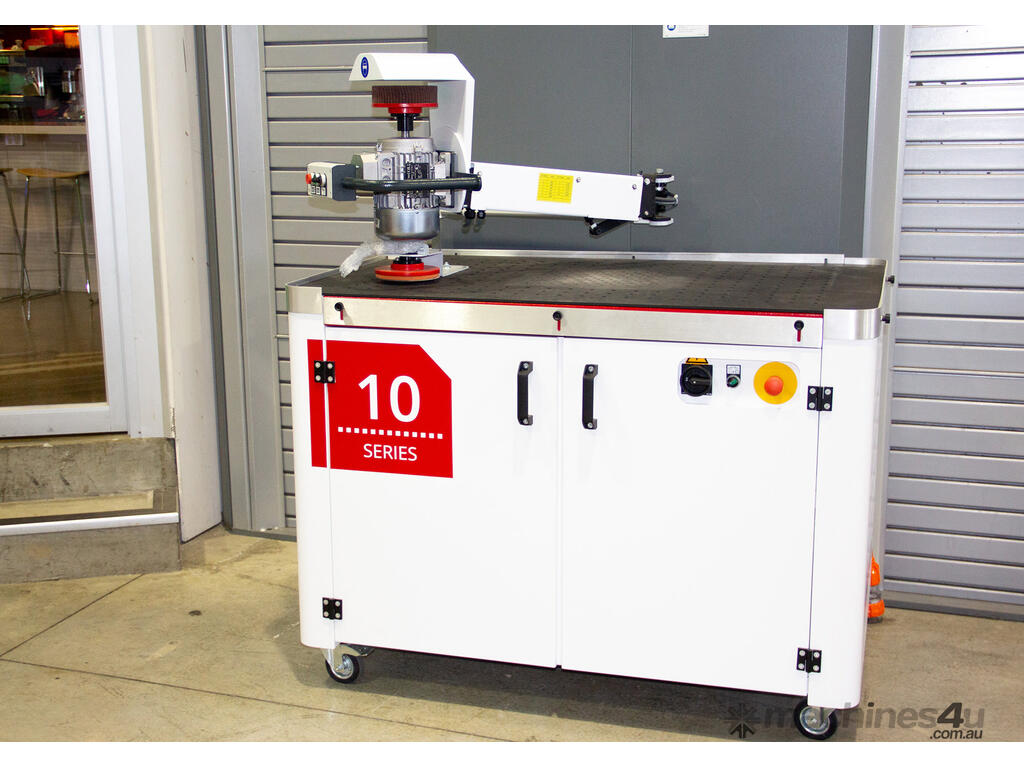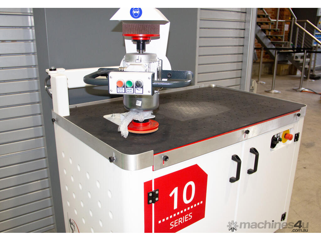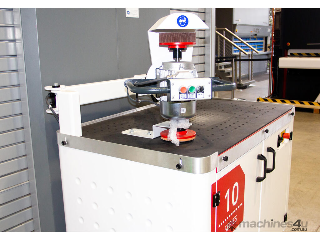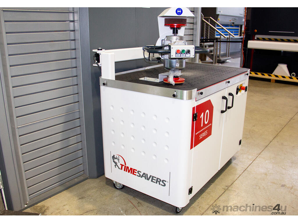 Timesavers 10 Series is a manual grinding machine for deburring, edge rounding, and finshing of metal parts. Offering high value at its low price point, this machine is suited for low-volume runs and specialised products for which an automated solution requiring lengthy programming would not be justified. Also suitable for parts too fragile for automatic equipment, as well as those that require extra attention to detail and intricate precision.