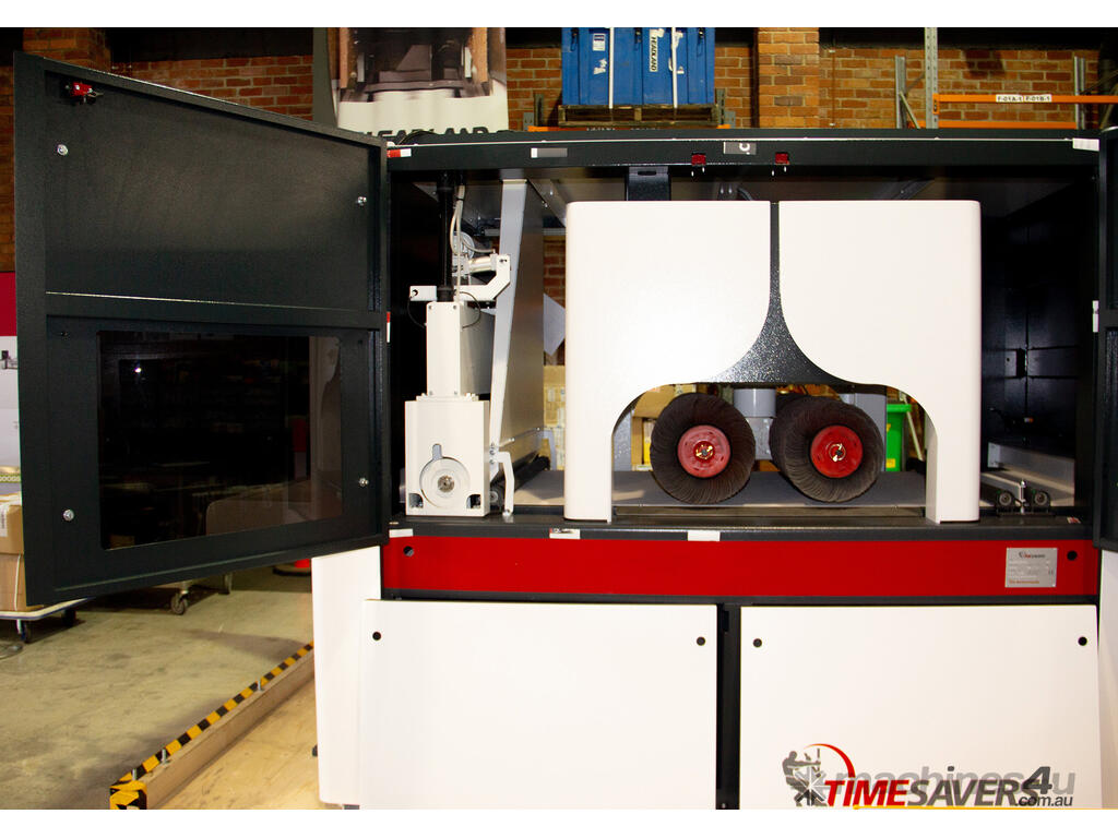 The Timesavers 32 Series Rotary Brush Dry Machine is perfect for deburring, finishing, edge radiusing, laser oxide removal, and heavy slag removal of laser, plasma, and water jet cut parts. Equipped with four multidirectional brush heads, this machine is used across metalworking, automotive and industrial manufacturing, aerospace, medical, and catering.