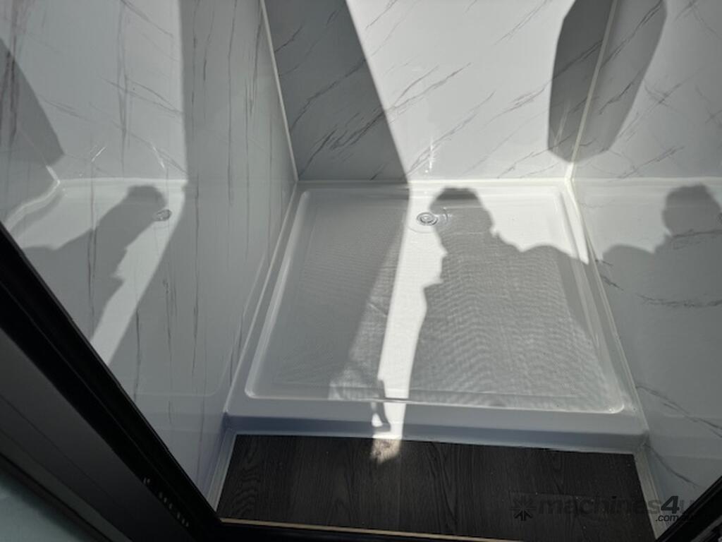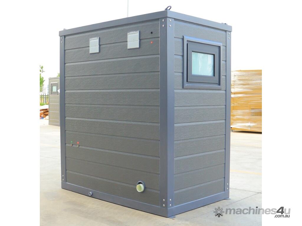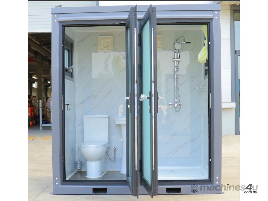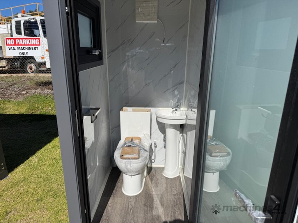Toilet Male Female Twin Frosted Glass Grey Cladding New. 2.2 x 1.3 x 2.4 high. 2x toilets. 2x hand basins. Frost glass. Ali doors. Fork lift pockets and crane lifting. No electrics fitted.