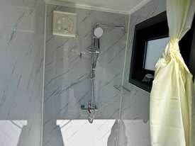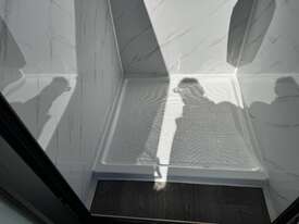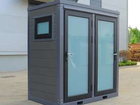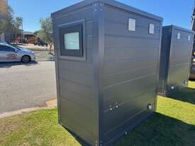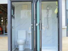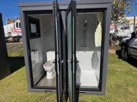 Toilet Shower Block Hand Basin 2x door Shower New. Portable building. 2.16 x 1.3 x 2.4m high. Comes with toilet, hand basin, shower with shower base. Ali front doors with frosted glass. Grey cladding (no electrics fitted).