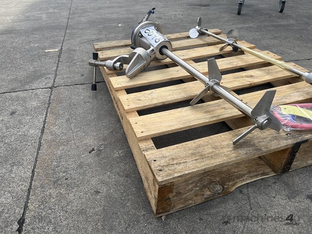 Unit is a stainless steel clamp mount air operated liquid agitator.