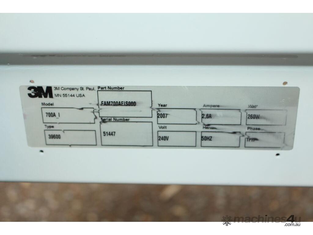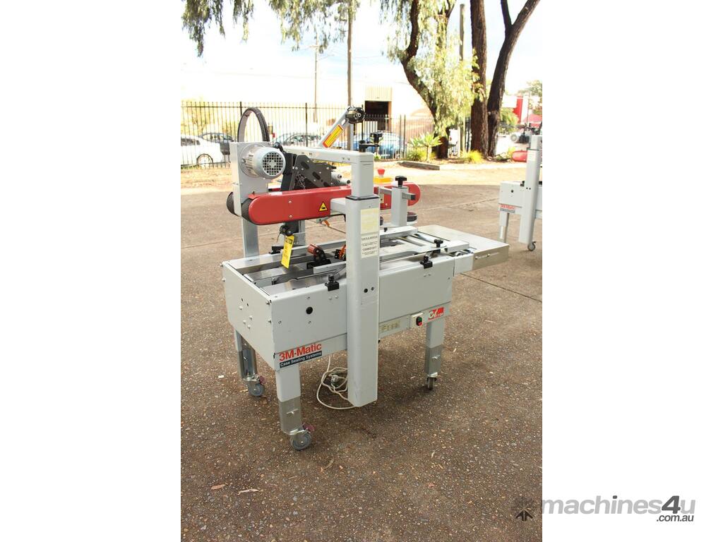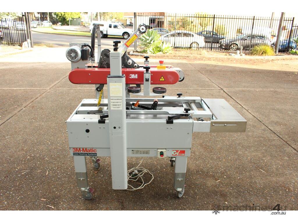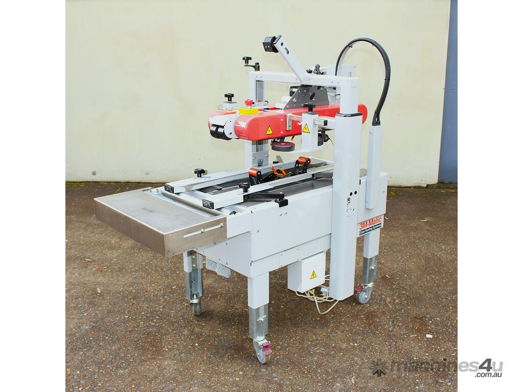 Top and Bottom Carton Taper Sealer, "3M" Model 700A-l, Type: 39600, top and bottom drive, top and bottom case taping, manually adjustable, single phase, mobile
